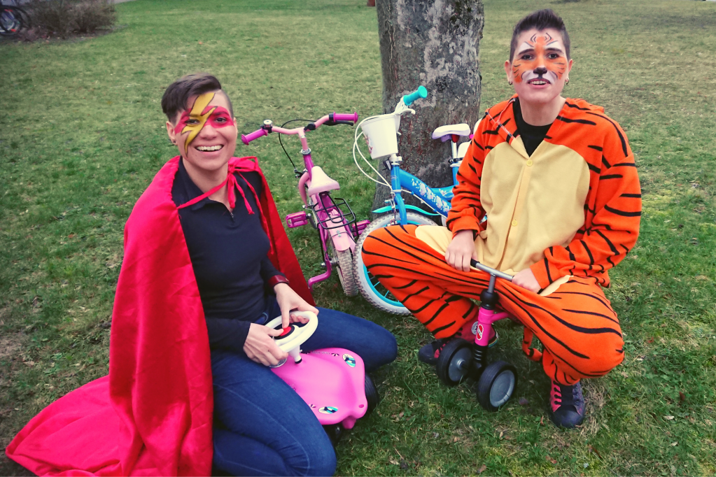 Wenn Anke nicht gerade Käse isst oder tanzt, trinkt sie erst mal einen Tee. Dana passt das ganz gut, dann hat sie meistens Schokolade und Kekse für sich. Zusammen radeln wir täglich durch Berlin oder auch über Wiesen und Felder in Deutschland, Tschechien und bald in vielen weiteren Ländern …