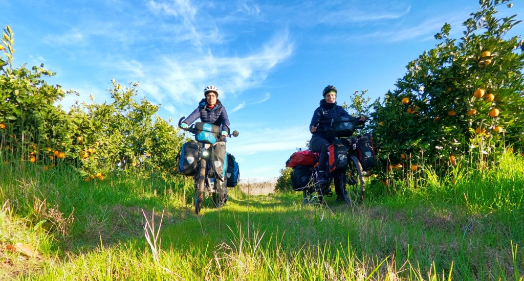Nun liegen also die ersten drei Nächte wild Campen hinter uns. Ui… war das aufregend, einmal hat uns ein Nutria im Orangenhain wachgehalten, aber ansonsten haben wir den Sternenhimmel genossen, fleißig Tütensuppe im Sonnenuntergang gekocht und (das Wichtigste) festgestellt, dass Schlafsäcke und Isomatten perfekt sind, sogar auf felsigen Untergrund.