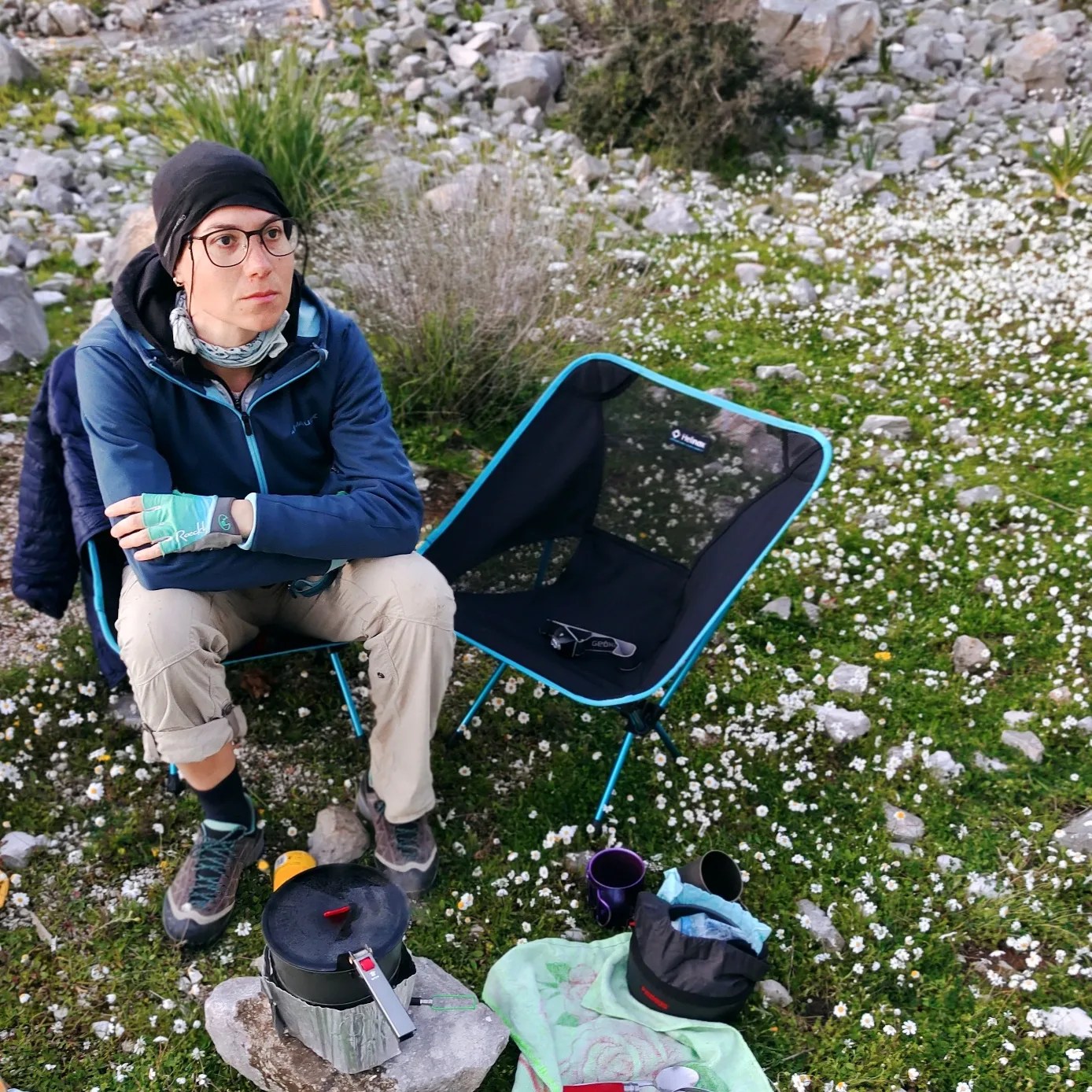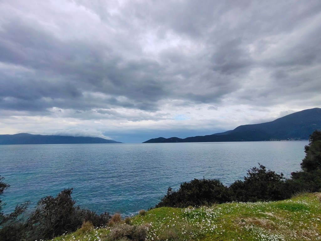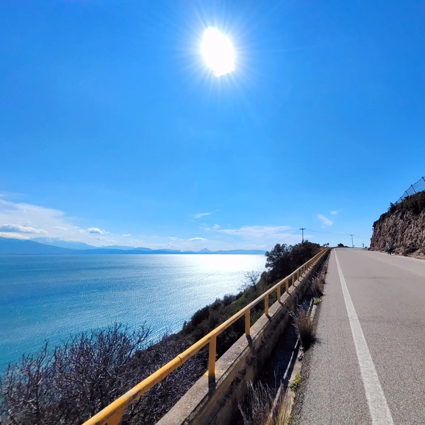 Wir sind in Griechenland! 🤩 Und schon jetzt steht fest: Wir lieben es hier. 🇬🇷💙 Die Landschaft ist einfach beeindruckend. Dana fühlt sich gleich ein wenig wie eine verwegene Amazone zwischen all den saftig-grünen Bergen mit den vielen Felsen. Obendrauf fuhren wir oft an Steilklippen entlang und blickten erstaunt auf das türkis strahlende Meer. So fuhr Dana verträumt vor sich hin, in Gedanken an die Doppelaxt… 🐎🏳️🌈