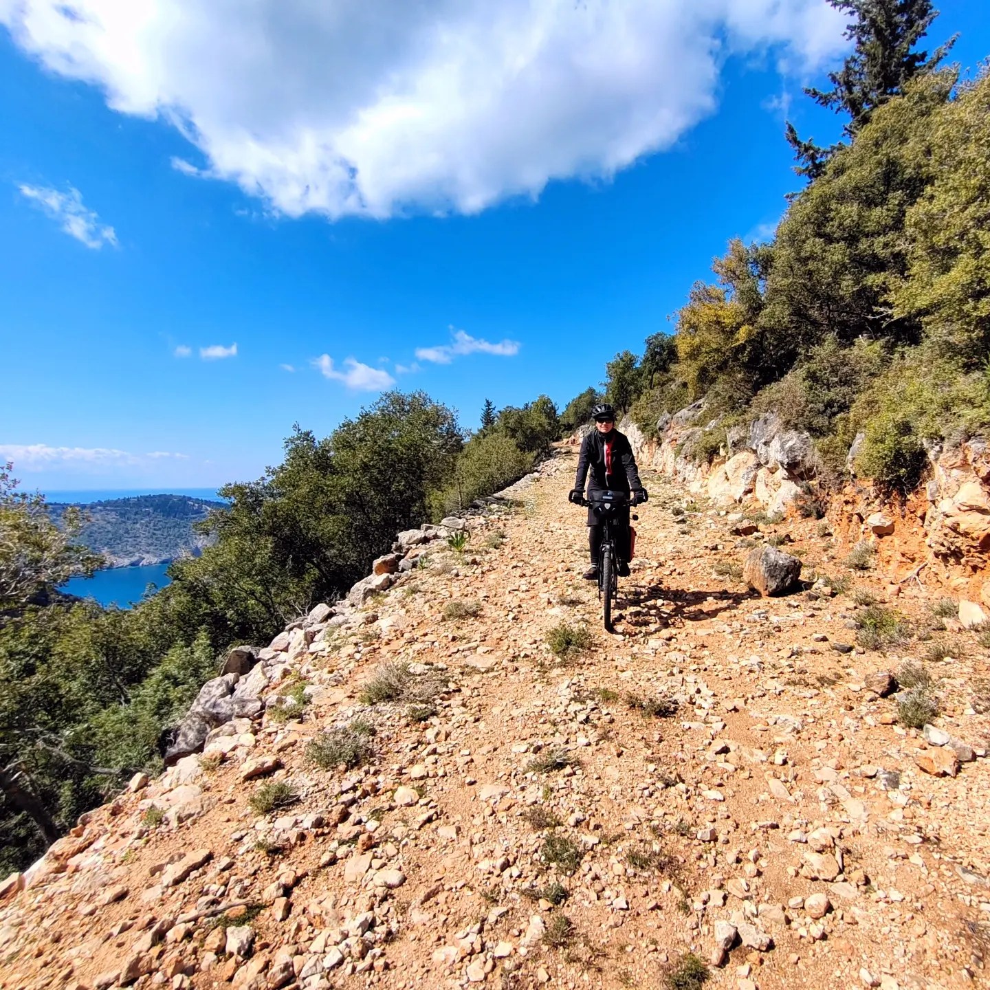 Am Wochenende haben wir zwei wunderbar entspannende Ausflüge über die Insel mit den Rädern gemacht. Wir staunen immer noch über die traumhaften Aussichten – egal wohin wir fahren: Blaues Meer mit hellen Stränden, schneebedeckte Gipfel, blumenübersäte Bergwiesen, sowie Ziegen und Schafe zwischen steilen Felsen und Olivenbäumen.