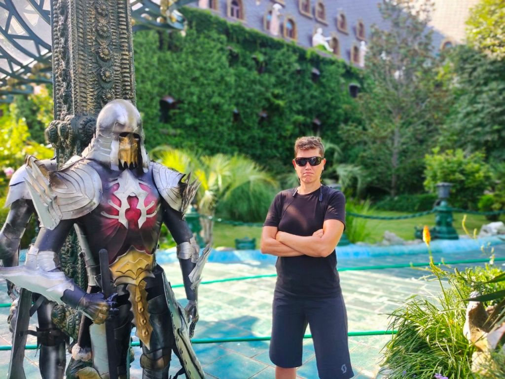 Das Abgefahrene daran: Es sind keine alten Gemäuer durch die wir gewandelt sind, sondern hier hat sich vor über 25 Jahren ein baubegeisterte Hobbyprinz mit seinem Sohn seinen Traum erfüllt und ein .. nunja doch sehr kitschiges Fantasieschloss errichtet. Heute können Touris im Garten wandeln, einen Kaffee mit echten Gold schlürfen (wir haben uns über einen kühlen Eiskaffee gefreut) und die liebevoll gestalteten Figuren, Fabelwesen und Fresken bewundern.🛡️🐲🧝