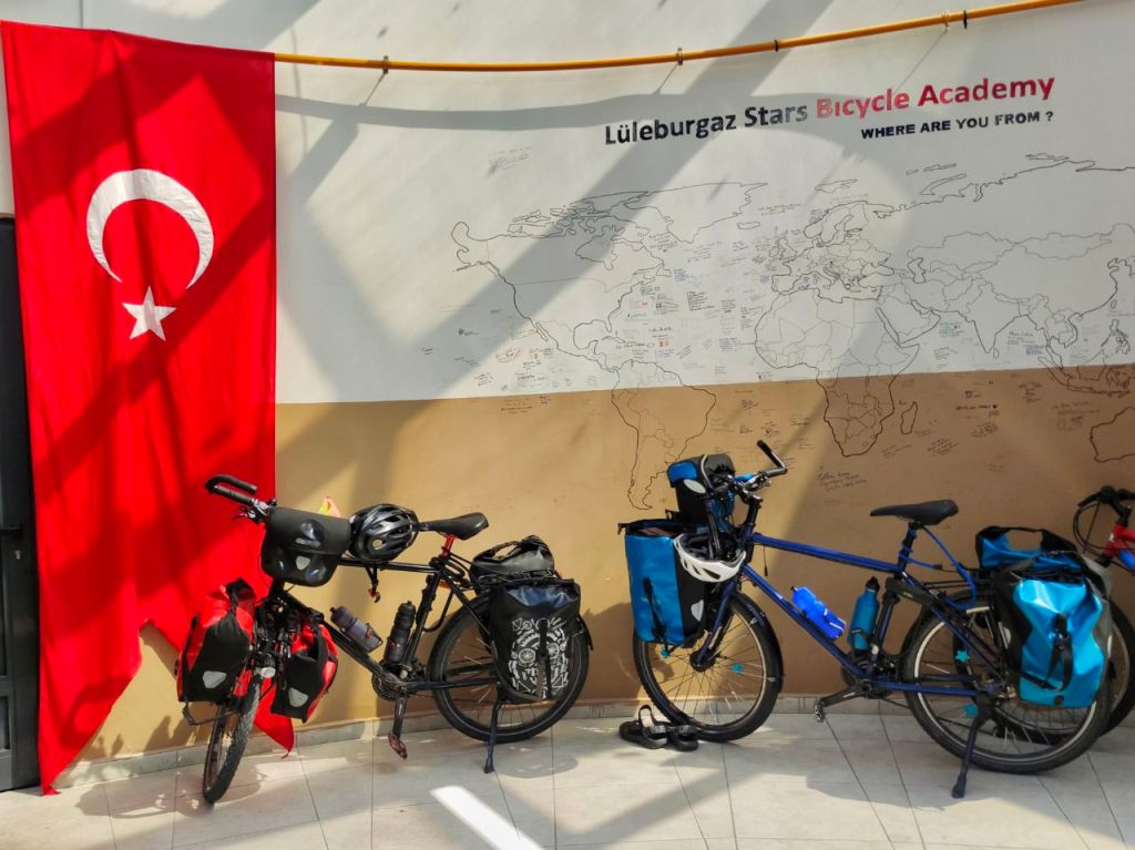 Heute sind wir in Lüleburgaz gelandet, einer Stadt mit einer fantastischen Fahrrad-Akademie. Hier können Radreisende kostenlos übernachten (inkl. Dusche, Küchennutzung, Tauschbörse und Werkzeug zur Reparatur), außerdem werden Workshops für Kinder und Jugendliche angeboten. Besonders überraschend für uns: Das Ganze ist kein Verein oder gemeinnützige Organisation, es wird finanziert und organisiert von der Stadt! Wow!