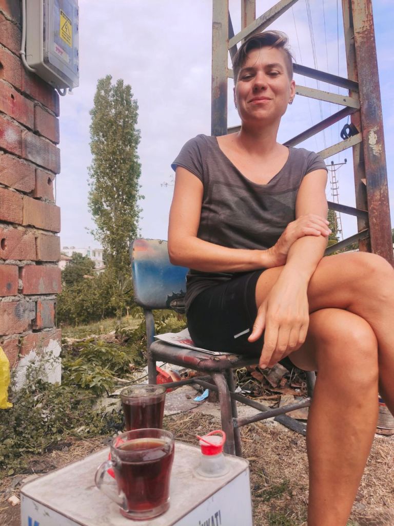 Nun sind wir auf dem Weg Richtung Izmir. Auf uns warten noch einige Sehenswürdigkeiten. Bis dahin möchte sich Dana am liebsten ausschließlich von frischem Baklava und Melonen aus kleinbäuerlichen Anbau ernähren, während Anke jeden angebotenen Tee annimmt… und da kommen am Tag so einige zusammen, beim Mittagessen, am Straßenrand und sogar ein Auto-Ausschlachter lud uns auf einen Tee in seine Garage am Dorfrand ein. Da legte er extra seine Flex zur Seite und warf den Gaskocher an. Teşekkürler!