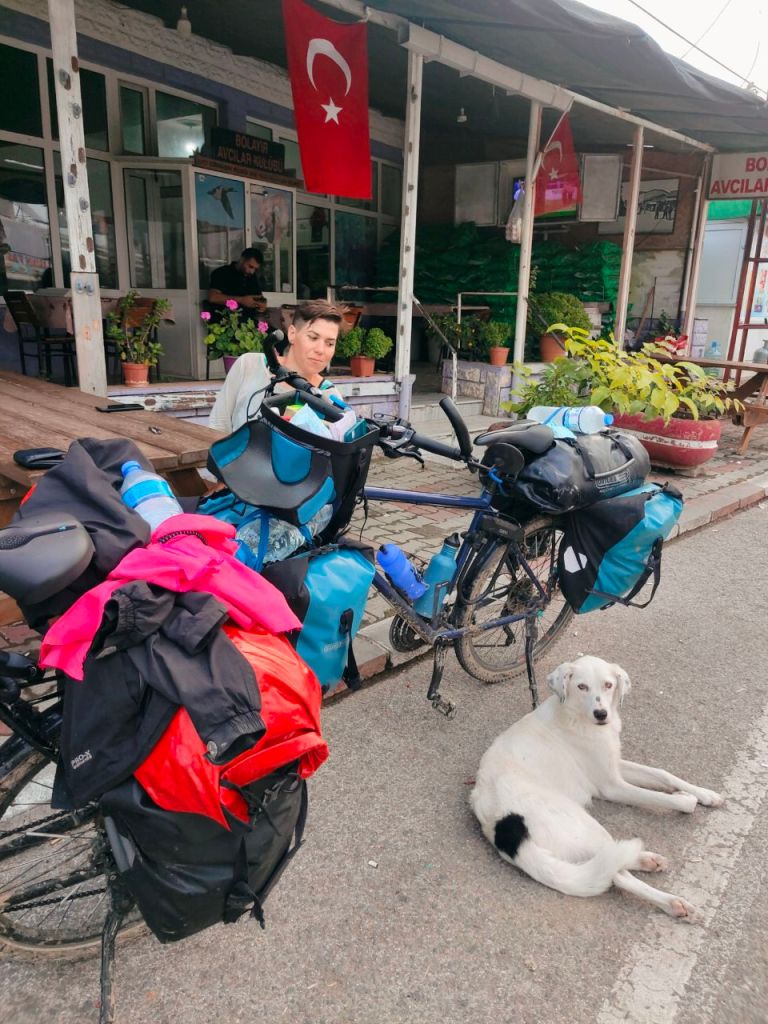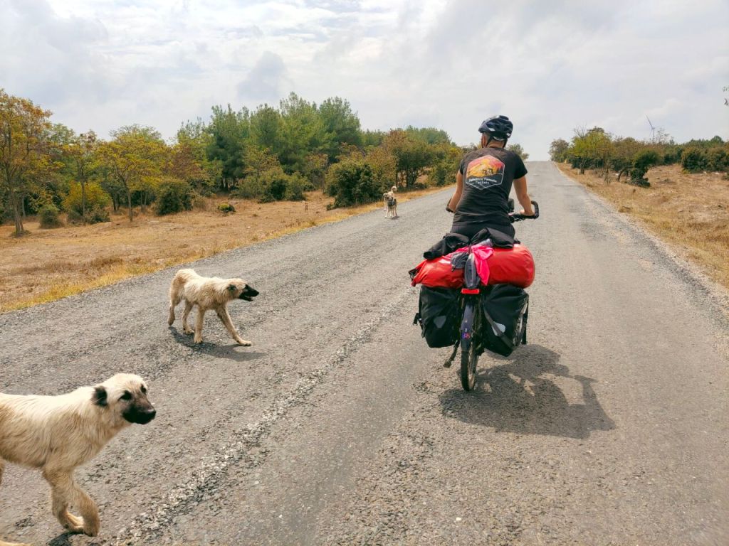 Hunde! 😱 Hier in der Türkei treffen wir mitunter ganze Rudel auf der Straße. Aber wir sind ja inzwischen Profis in Sachen Streuner… Und so mancher Schnuffi passt brav auf unser Zelt auf oder bewacht die Räder, während wir essen.😉