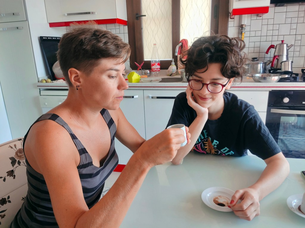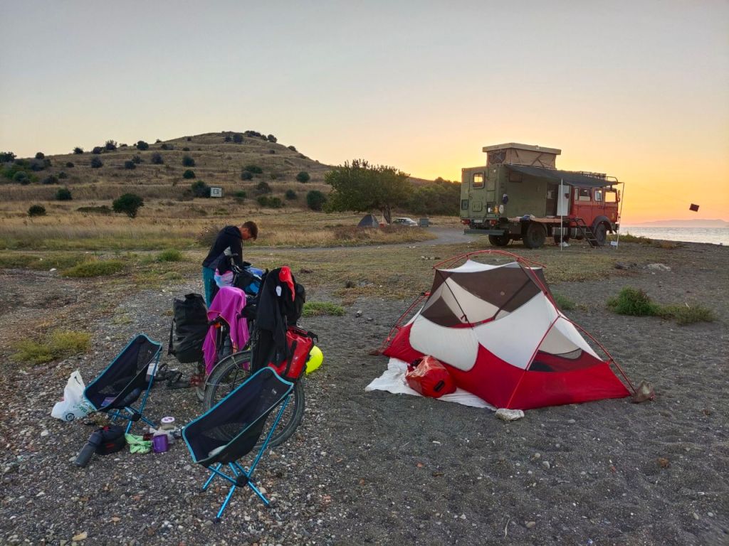 Wir haben uns schon lange in unseren neuen Alltag eingegrooved. Die Schmerzen beim Radfahren sind längst überwunden, wir wissen, wie viel Höhenmeter wir schaffen, wie weit wir radeln können und wie lange wir für eine Tour brauchen. Ansonsten haben wir längst ein paar Arbeitsbereiche festgelegt: Dana plant akribisch jeden Tag die Routen, ist unsere Social Media Managerin und (ganz wichtig) die Bäckerei-Beauftragte.🥐🍞🍪 Anke durchforstet dafür die Supermärkte, plant Wwoofing-Höfe, leitet durch den Tag und putzt die Ketten (ganz freiwillig). Ansonsten übernehmen wir natürlich beide alles was so anfällt, Wäsche waschen, kochen, Zelt aufbauen…