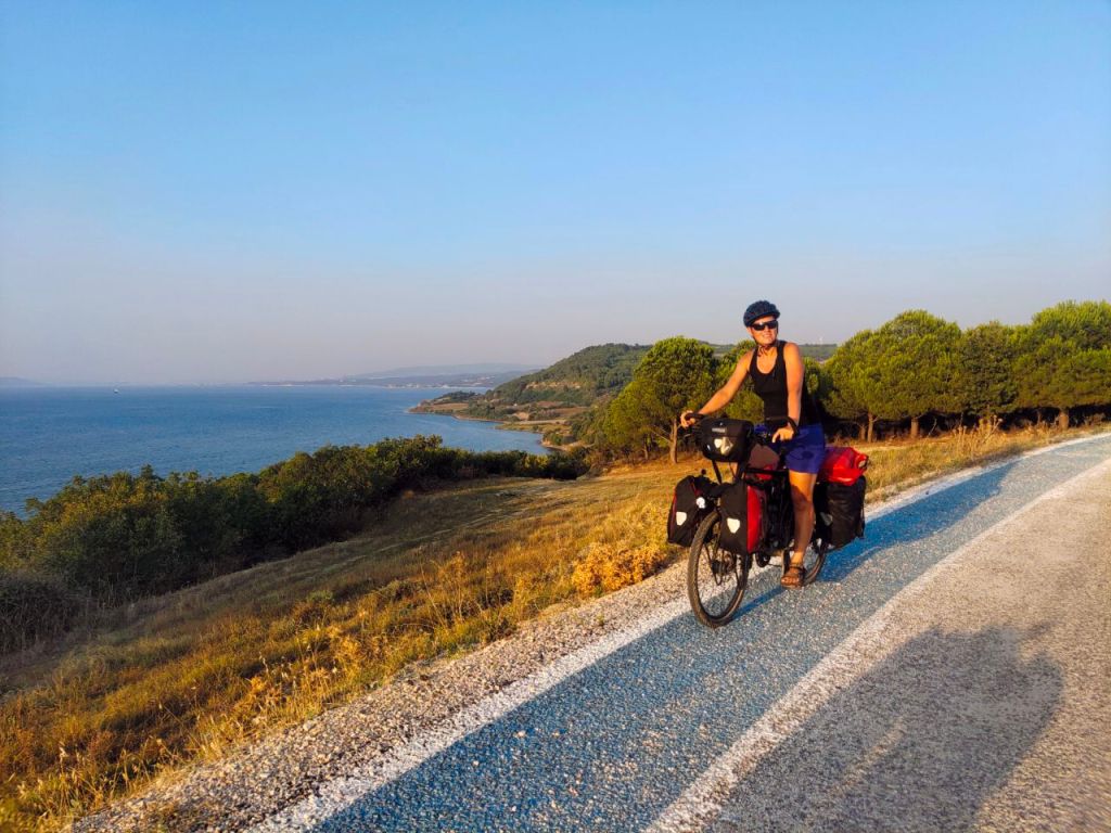 Vor vier Wochen sind wir in die Türkei eingereist. Dabei war gerade der Grenzübergang mit dem Rad noch einmal besonders beschwerlich. Denn zwischen Bulgarien und der Türkei gab es zu Zeiten des Kalten Krieges einen mehrere Kilometer langen Grenzstreifen, der für die Bevölkerung gesperrt war. Nach dem Ende der 80er wurde das Gebiet dann zu einem Naturschutzgebiet erklärt. Wie so oft blieb von dem ehemals politisch gesperrten Gelände unberührte Natur übrig. Auf einer Bootstour in der Nähe von Achtopol konnten wir unzählige Vögel, Schildkröten und seltene Pflanzenarten bewundern. Der große, große Nachteil dabei: Jedes Jahr im August wird diese Region von einer höllischen Fliegenplage heimgesucht. Natürlich hatten wir genau diesen Zeitraum erwischt. 🙈 Die Fliegen waren die penetrantesten Störenfriede ever! Augen, Ohren, Gesicht… all unsere Schwachstellen wurden ganz gezielt attackiert. Danas Gefluche „Das sind die Fliegen des Teufels!“ 😈 war überall zu hören. Die kreative Lösung: Mit unseren Wäschesäcken über dem Kopf radelten wir weiter. Genau das, was man bei 35 Grad so braucht und zudem der völlige Niedergang unseres eh schon bescheidenen Kleidungsstils. Wir wurden sogar von vorbeifahrenden Grenzpolizisten angehalten, doch bei unserem hektischen Gewedel hatten sie schnell Verständnis und ließen uns vermummt im Grenzgebiet radeln.