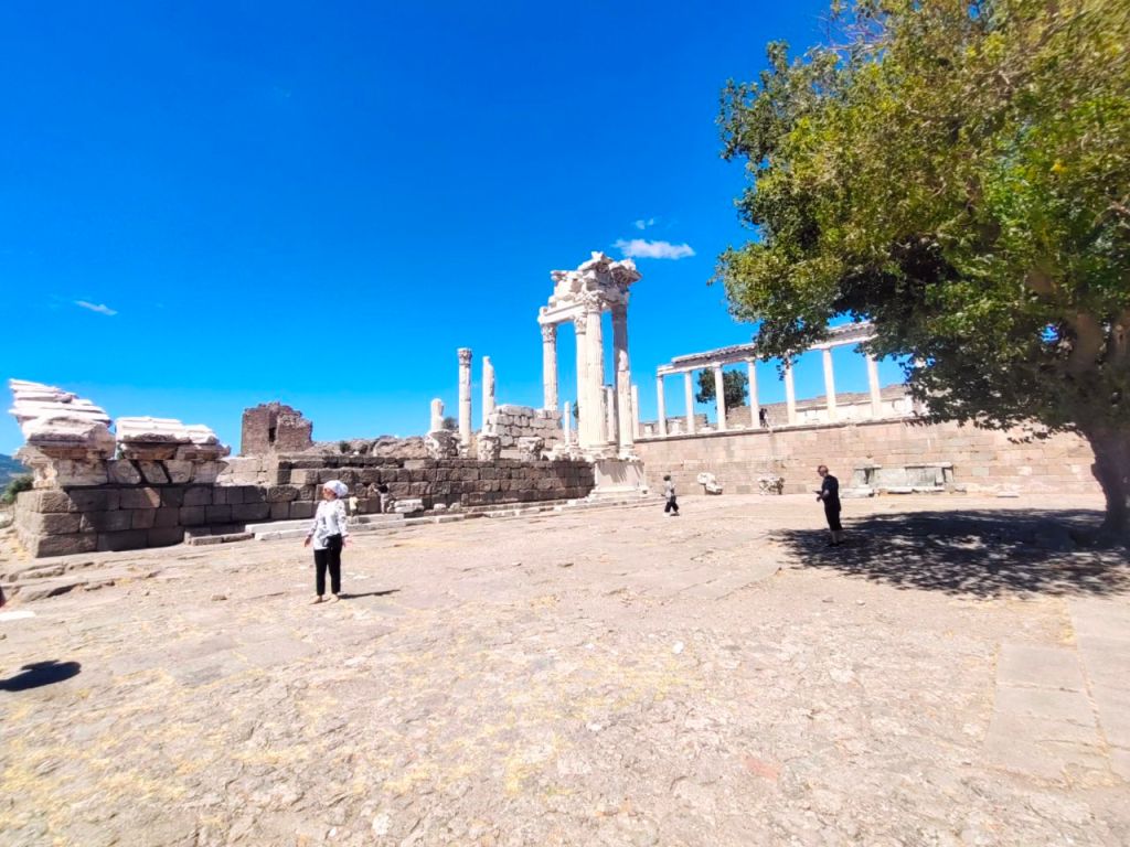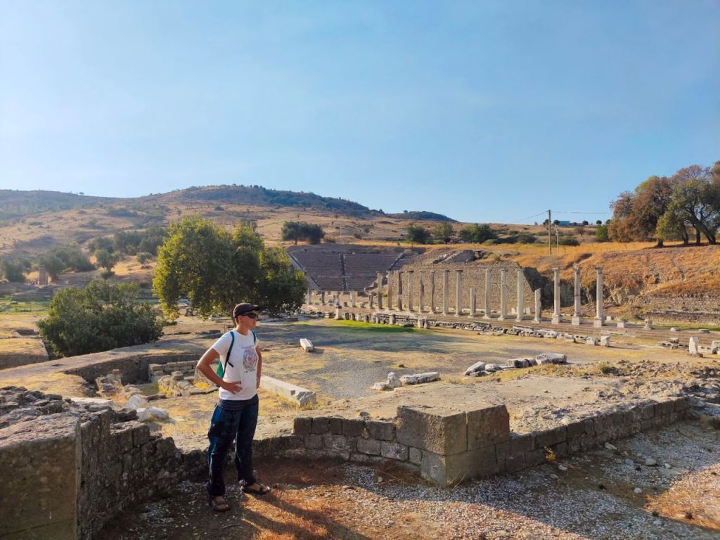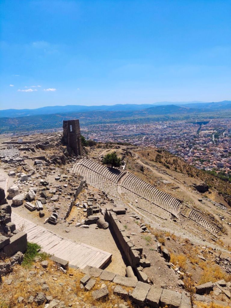 Nach all dem Input ging es für uns mit noch mehr alten Steinen weiter. Die Stadt Bergama liegt am Fuße der alten Akropolis Pergamons – eine beeindruckende Ruinenlandschaft. Bis wir verstanden, welches von den ehemals riesigen Gebäuden und Steinen der berühmte Zeustempel – mit dem nun in Berlin befindlichen Altar – war, haben wir einige Zeit gebraucht. Der Pergamonaltar, der sich zwischenzeitlich auch in Russland befand, wurde 1959 feierlich an die befreundete DDR zurückgegeben – zusammen mit der Nofretete. Also wir haben definitiv viel gelernt!