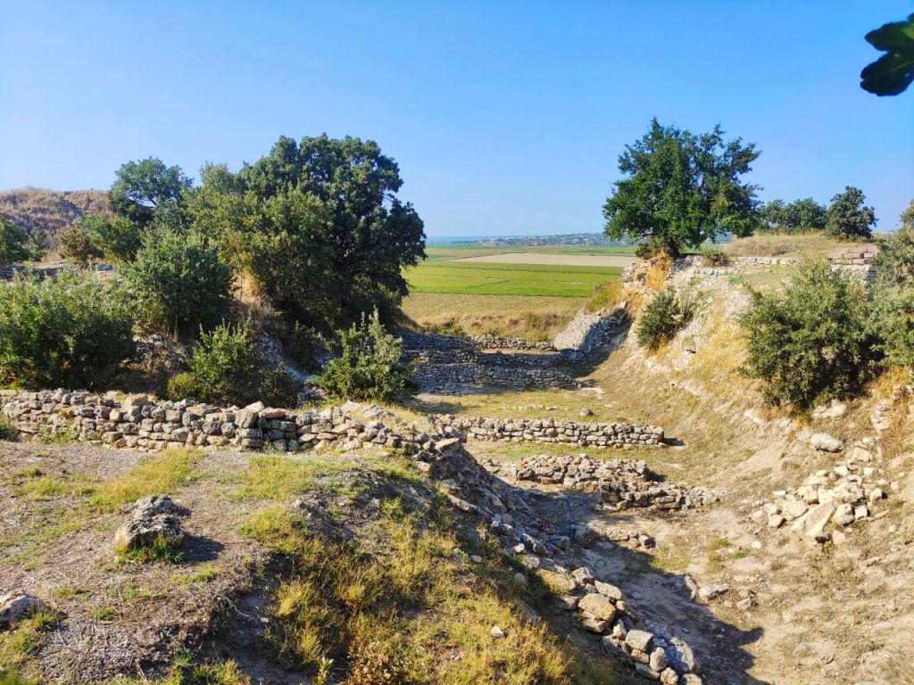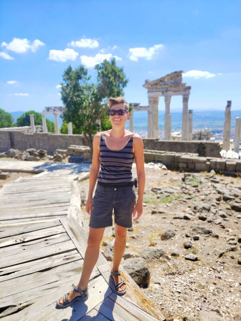 Unser weiterer Weg an der Ägäis entlang führte uns nun von einer historischen Sehenswürdigkeit zur nächsten antiken Stätte. Als erstes erreichten wir die sagenumwobene Stadt Troja. Homer beschrieb sie (inklusive dem genauen Standort) hilfreich in der Ilias. Ihm ist es zu verdanken, dass die List mit dem Holzpferd bis heute bekannt ist. Wir begaben uns begeistert auf Spurensuche in die Ausgrabungsstätte und wurden vom Trojafieber gepackt. Also luden wir unsere Handys mit geschichtlichen Podcasts voll und binge-watchten ZDF-Dokus zum Thema. Gab es Troja überhaupt? Und Homer? Was fand Schliemann wirklich? Tja, da streiten sich die Geister.