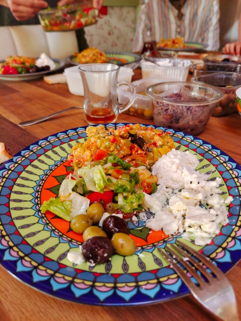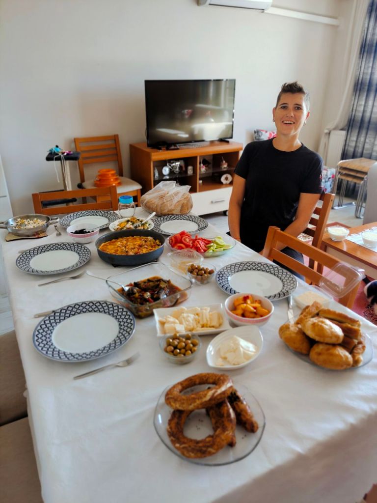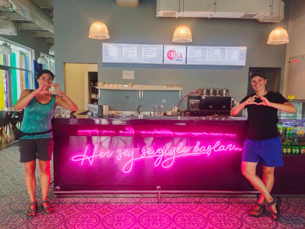 Und an einem weiteren Abend in einem Café mit traditionell türkischer Musik fing sogar eine Frau an, aus dem Kaffeesatz zu lesen. Zukünftige Ehemänner, Häuser und Glück standen da im Kaffeesatz. Wir hielten uns lieber etwas zurück, bevor sie in unserer Zukunft noch Mann und Kind erblicken konnte. Und nicht zuletzt genossen wir die Zeit, mit Tochter Ebrar auf dem Sofa abzuhängen und alte Friends-Folgen zu gucken. Einfach mal „wohnen und Familie spielen“. 😃🛋️📺