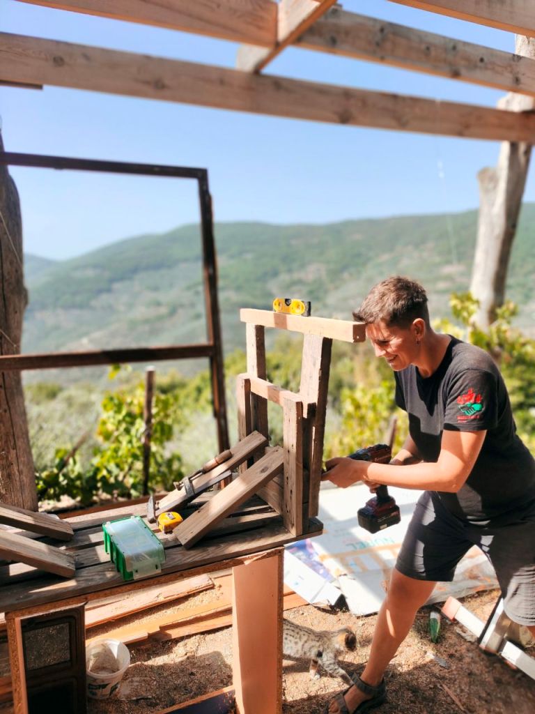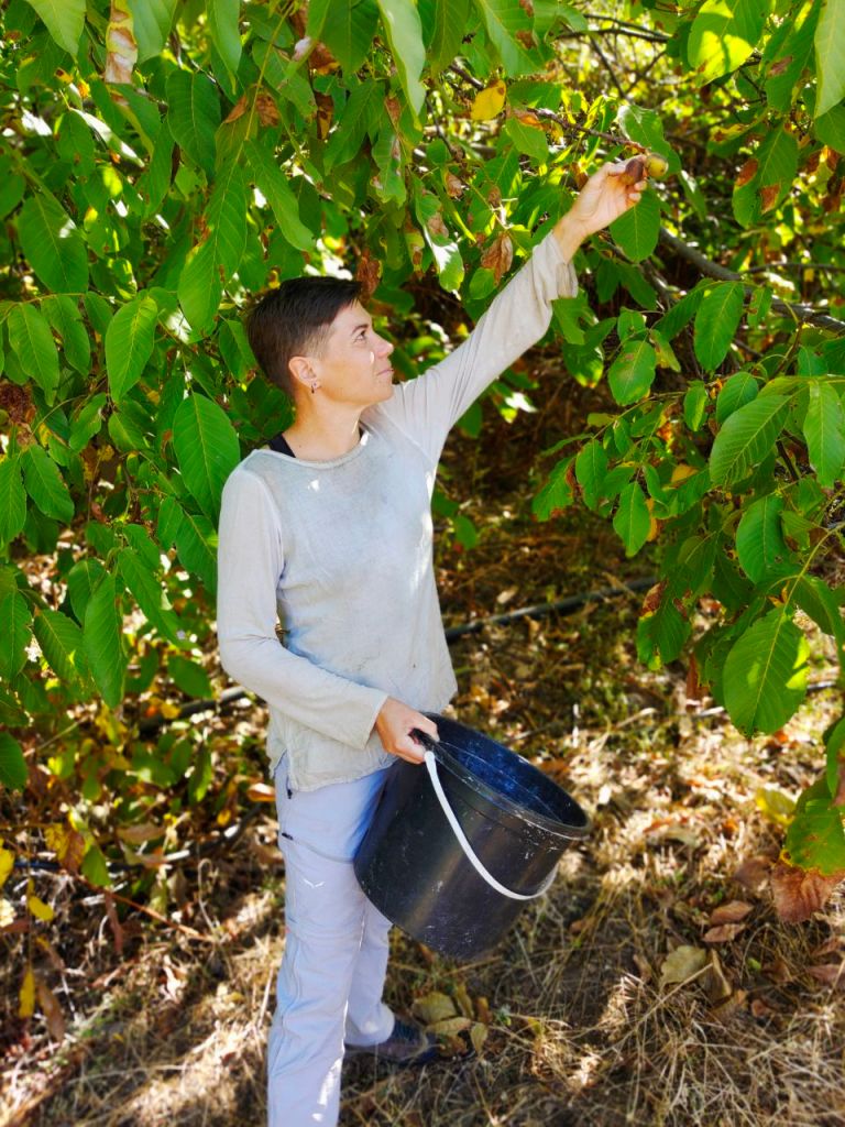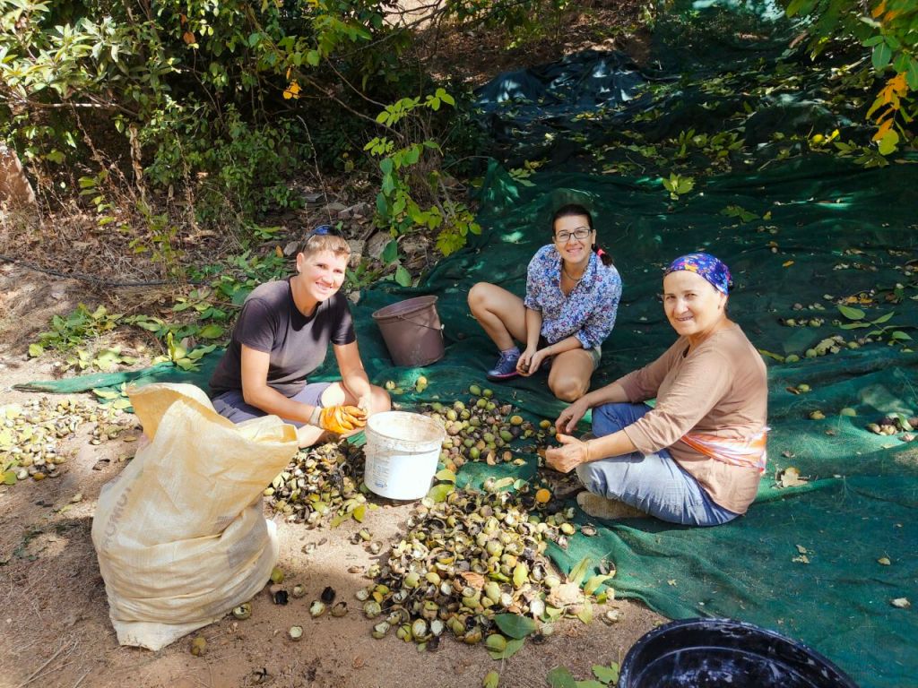 Gerade ist Erntezeit für Walnüsse, Äpfel, Paprika, Tomaten und (zu Danas großer Freude) Auberginen. Mal klettern wir auf Bäume, mal pulen wir stundenlang die frischen Walnüsse aus ihrer grünen Schale. Und zwischendurch handwerkern wir mit Veysi, der uns als Zimmermann einige Tricks verrät. Dabei entsteht schnell ein Badezimmer-Schrank oder eine Holzbank.