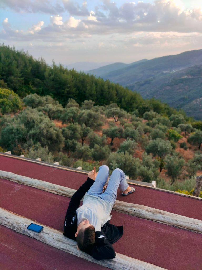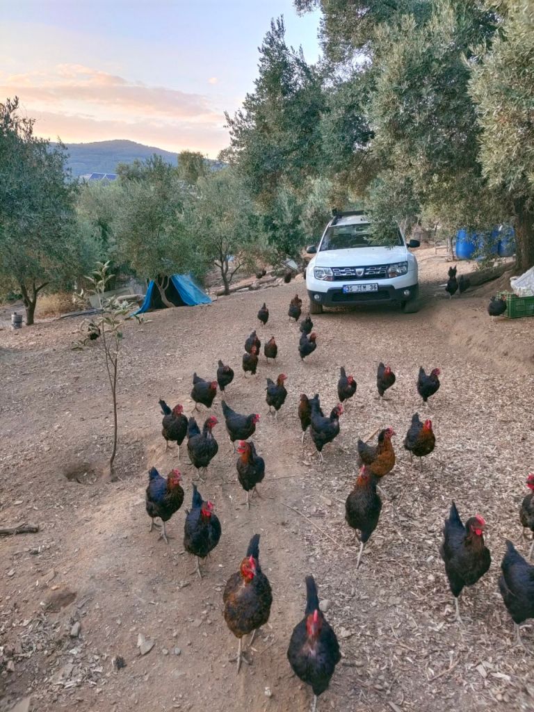 Was für ein Farmerinnen-Leben 👨‍🌾🧑‍🌾: Dank WWOOF arbeiten und leben wir gerade auf einem abgelegenen Selbstversorgerhof und tauchen in eine neue Welt ein. Unsere beiden Hosts – Veysi und Türkan – sind Aussteiger und bewirtschaften gleich zwei große Grundstücke. Jetzt schlafen wir gemeinsam mit Hund, Katzen und vielen Hühnern mitten im Olivenhain. Lange lebten die beiden in Jurten, bis sie in diesem Sommer das liebevoll selbstgebaute und designte Öko-Haus frisch beziehen konnten.
