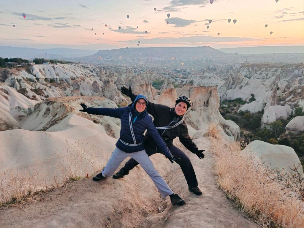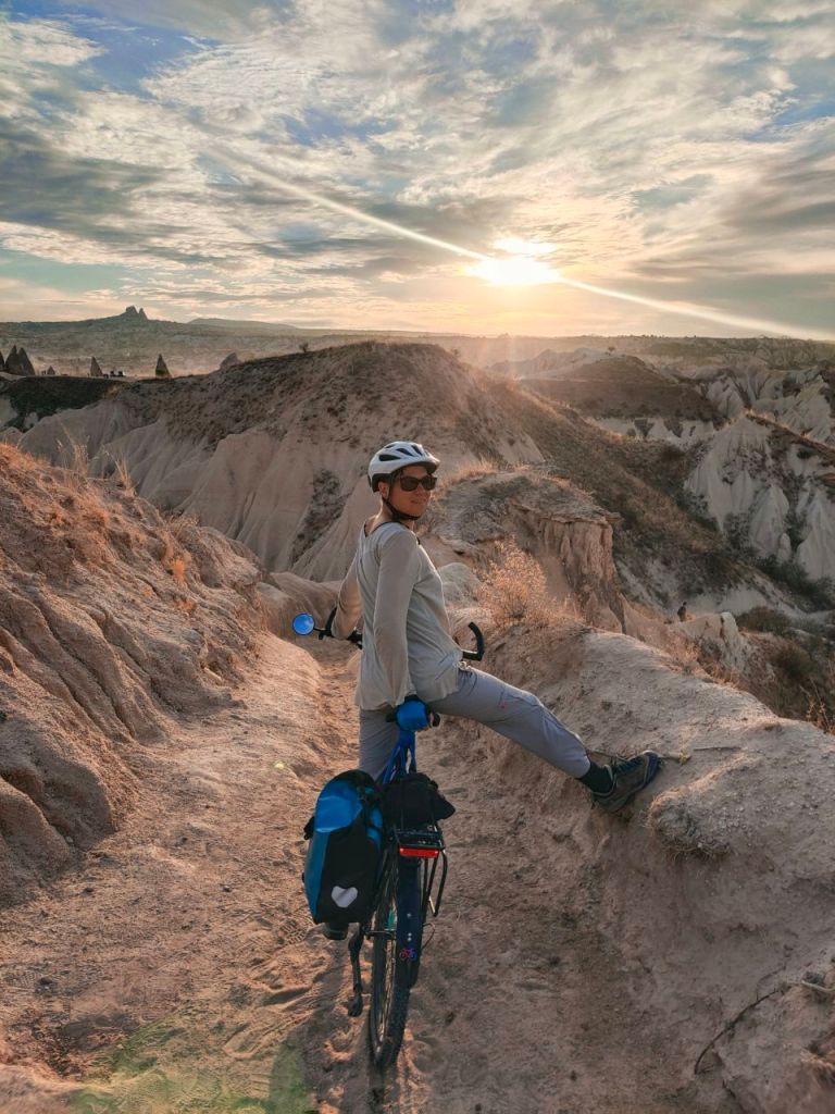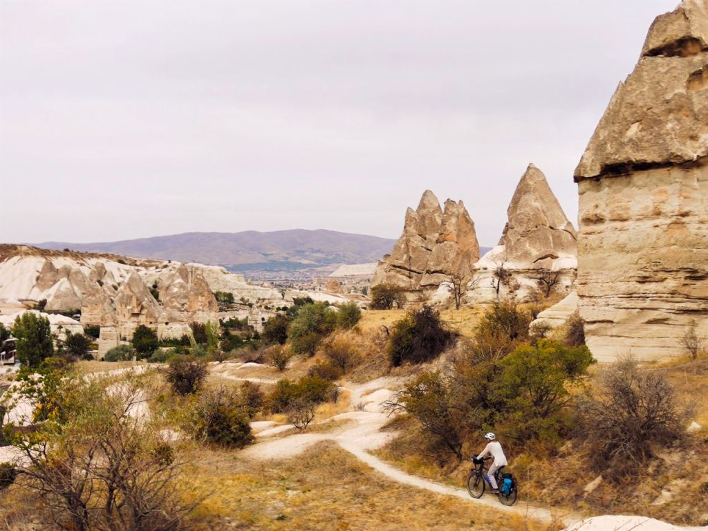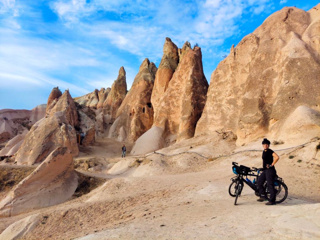Wow! 🤯 Was für eine bezaubernde Landschaft. Wir verbrachten eine Woche in Kappadokien. Dabei sahen wir Schluchten mit verrückten Felsformationen, eine unterirdische Stadt und fuhren sogar (zum Glück ohne Gepäck) mit dem Rad durch einige Schluchten. 🚵♂️⛰️🚵