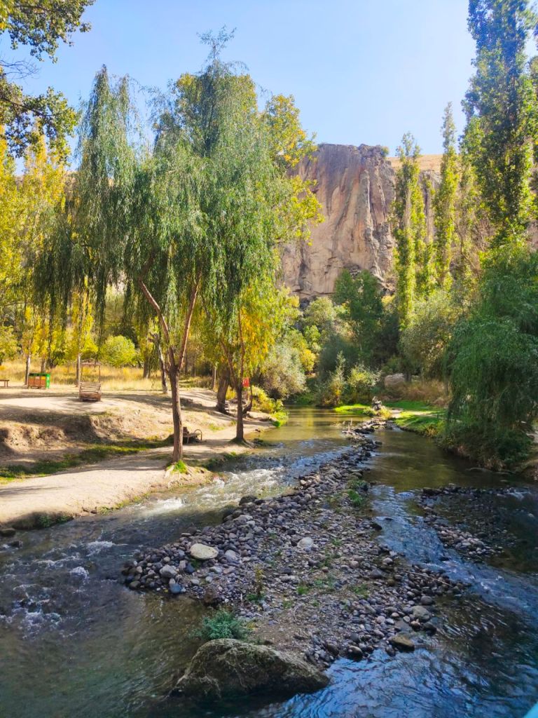Bei so vielen Naturphänomenen und geschichtlichen Input wussten wir zunächst gar nicht, wo wir anfangen sollten. Aufgeregt stürzten wir uns in die ersten Schluchten bei Göreme. Standen morgens um 5 Uhr auf, um die berühmten Heißluftballons bei Sonnenaufgang zu beobachten und buchten schließlich eine Bustour ins Ihlara-Tal mit Führung durch die unterirdische Stadt Kaymakli.