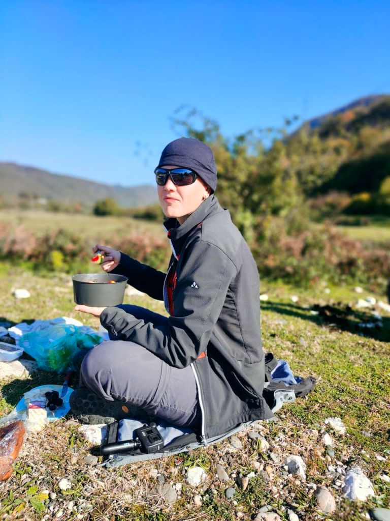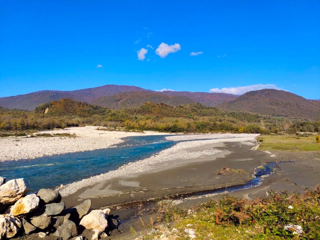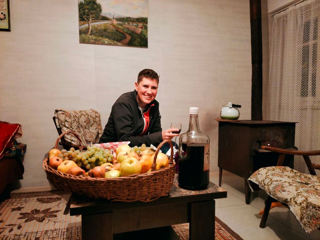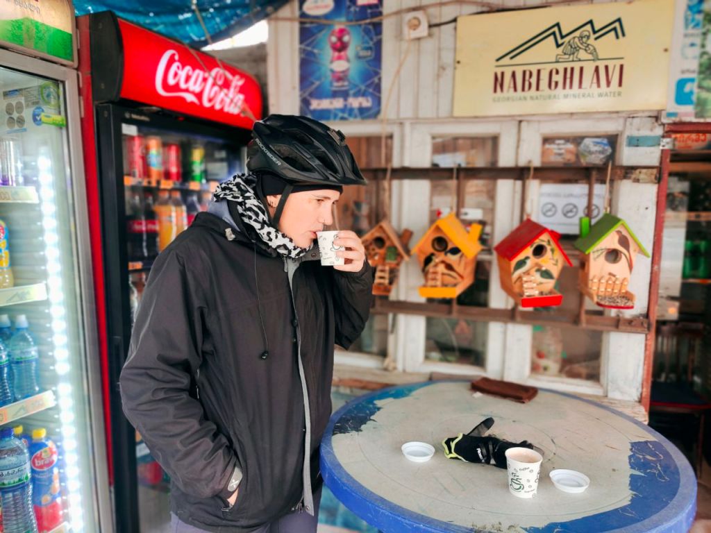 Unser Weg ging wieder zurück von Tiflis nach Kutaissi, dabei radelten wir teilweise über die Berge. Leider ist es da im November schon ganz schön frisch. Nachts waren es zirka 0 Grad. Also haben wir auf unser Zelt verzichtet und hatten sehr viel Spaß in kleinen privaten Pensionen. Dort bekamen wir jedes Mal selbstgemachtes Bio-Essen, wie Hähnchen, Chatschapuri, frischen Käse und konnten uns obendrein an den brodelnden Holzöfen in der Küche aufwärmen.😍🔥