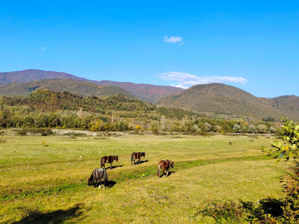 Was für ein interessantes Land. Wir sind letzte Woche 300 km durch Georgien 🇬🇪 gestrampelt, haben dabei 3.000 Höhenmeter überwunden und sind unzähligen Kühen, Schweinen, Schafen, Hühnern und Truthähnen ausgewichen, die fröhlich über die Straßen taperten. 🐄🐖🐏🐑🦃 Und wir haben (sehr zu Danas Freude) sogar ein paar Wildpferde entdeckt.