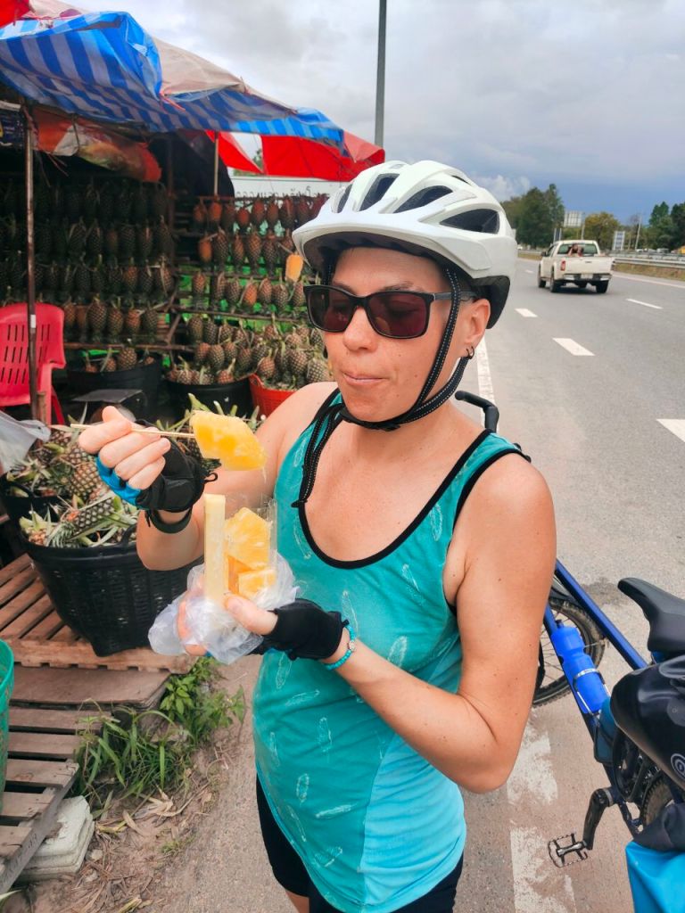 Obendrein gönnen wir uns jeden Tag frisches Streetfood und tropische Früchte. Und abends können wir sogar günstig in einem kleinen Hotel schlafen, da müssen wir uns nicht vor den großen Schlangen fürchten. Alles in Allem ist Thailand für uns das optimale Rad-Reiseland, gerade für Frauen. 🚴♂️🌴🚴♂️🏖️