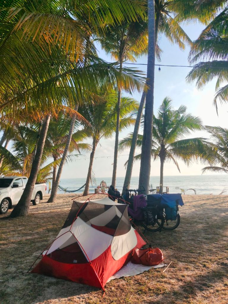 Nun fahren wir entspannt an der Thailändischen Riviera entlang, zelten zwischen Palmen, genießen Thai-Massagen und blicken verträumt aufs türkisblaue Meer. Der Ausflug zu dem berühmten Samui-Archipel, hatte zwar einiges zu bieten, aber letztlich reisen wir doch lieber ein wenig abseits des Massentourismus. Dafür eignet sich das Rad schließlich wunderbar.