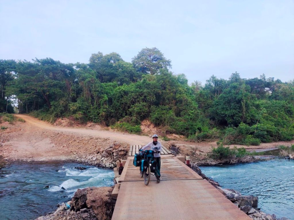 Los geht’s mit Weihnachten: Oh du Fröhliche! Statt hektisch die allerletzten Weihnachtseinkäufe zu erledigen und sich im Supermarkt um die Spekulatius zu kloppen, fuhren wir dieses Jahr am 24. Dezember noch ein „bisschen“ mit unseren Rädern. Als besonderes weihnachtliches Highlight hatten wir uns die Grenze von Kambodscha nach Laos ausgesucht, die allerdings ziemlich unspektakulär zu überqueren war. Unser Ziel: die „4.000 Islands“ – eine Inselgruppe mitten im Mekong rund um die berühmten Mekongwasserfälle. Wir hatten uns auf der Insel Don Khon eine Unterkunft über die Feiertage gemietet. MapsMe zeigte uns den Weg zum Fähranleger und prompt standen wir einsam und allein am Flussufer – von einer Fähre weit und breit nichts zu sehen. Wir machten uns auf die Suche nach Hilfe… Doch die Sprachbarriere kam uns leider in die Quere.