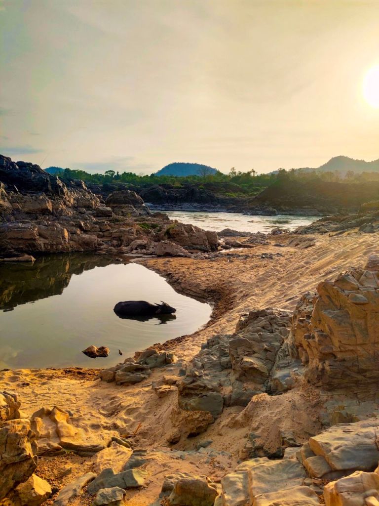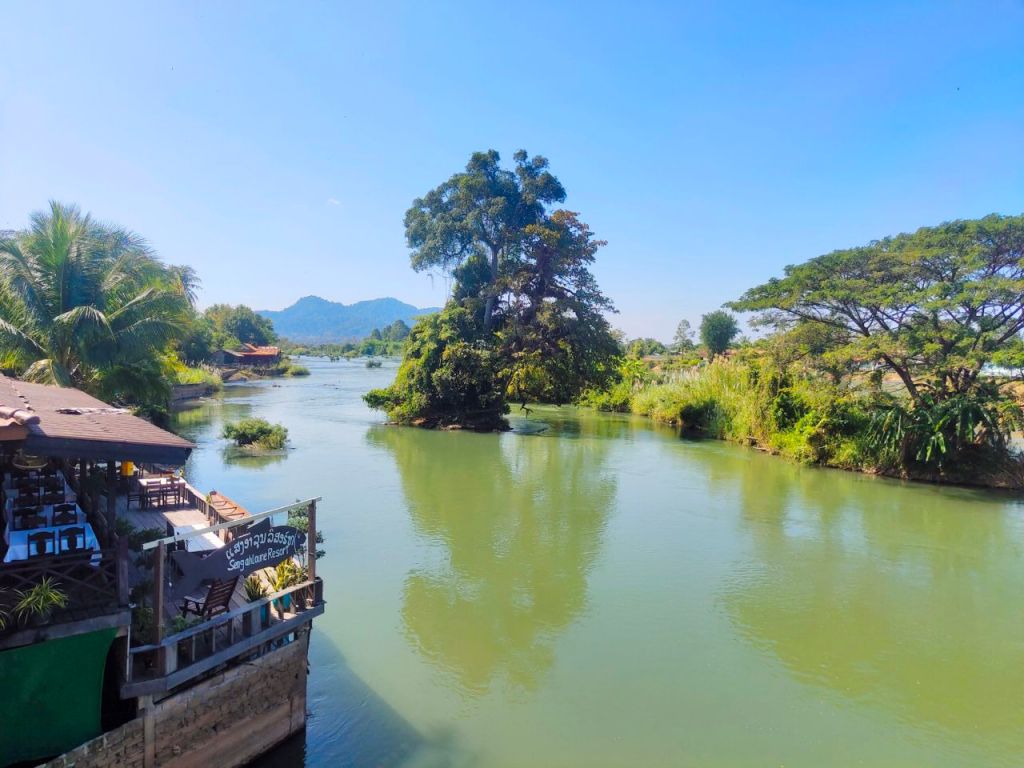 Für uns war der Aufenthalt traumhaft. Wir übernachten auf der etwas ruhigeren Insel (Don Khon) mit vielen kleinen Restaurants. Da auch hier der Tourismusandrang noch nicht wieder voll eingesetzt hatte, genossen wir alle Annehmlichkeiten (Cocktails, leckeres Essen und Menü-Karten auf Englisch) ohne großes Gedrängel.