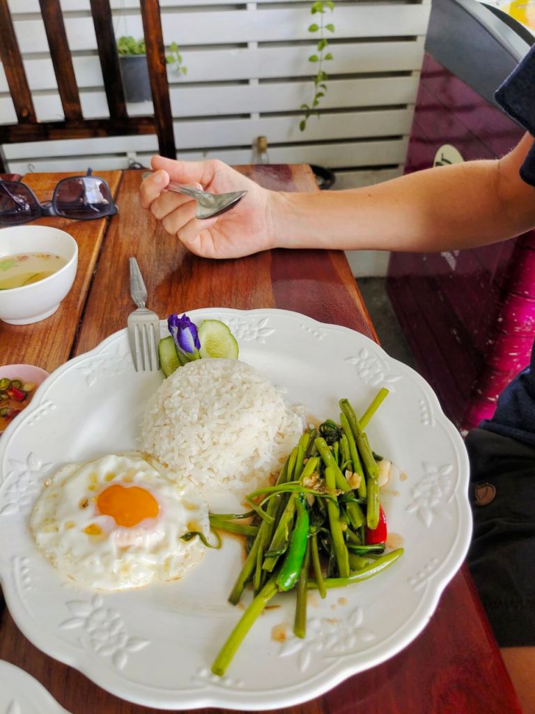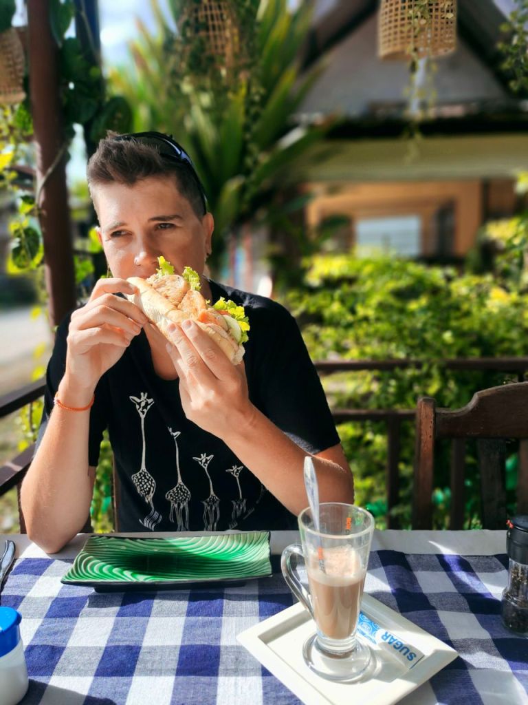 Auch bei diesem Ausflug kamen wir, wie so oft in Südostasien, in kommunikative Bredouille. Als wir eines abends etwas zu Essen suchten, fanden wir ein kleines, sympathisches Restaurant, bei dem wir uns mit Google Translate abmühten, die Karte zu übersetzen. Und dieses mal wurde es besonders skurril: ob „Meine Augen sind schwul“, „Der Seemann zieht zum Meeresrauschen“ oder „ein Freundschaftsspiel“, wir hatten viel Spaß. Das ganze klang eher nach homoerotischer Seemannsgeschichte, als was nach Abendessen. Wir entschieden uns für den Seemann und bekamen rohe Garnelen auf Papayasalat – beides in einem Schärfegrad, der weit über unserer Schmerzgrenze lag. Kulinarisch für uns ein Fail, wir hätten die „schwulen Augen“ nehmen sollen.