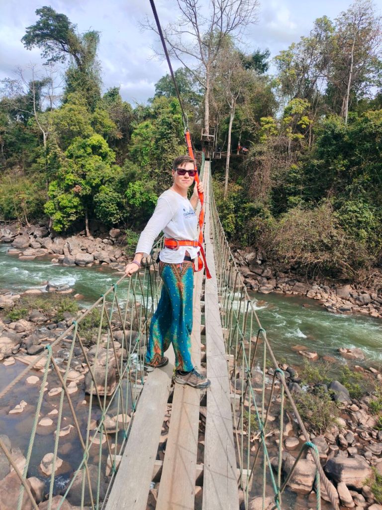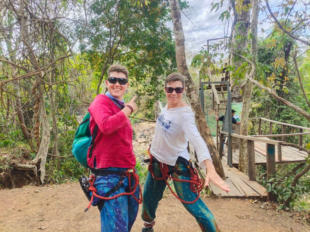 Und noch ein Aufreger erwartete uns: An einem etwas verträumten Wasserfall gab es eine Zipline für gerade mal 3 Euro pro Person. Ein bisschen Action schadet ja nie… dachten wir. Als Dana schon nach zwei Metern stecken blieb und etwas unglücklich über dem Abhang hing und Anke etwas nervös feststellte, dass sie nur einmal gesichert war, setzten wir billige Abenteuer auf unsere „Not to do Liste“.