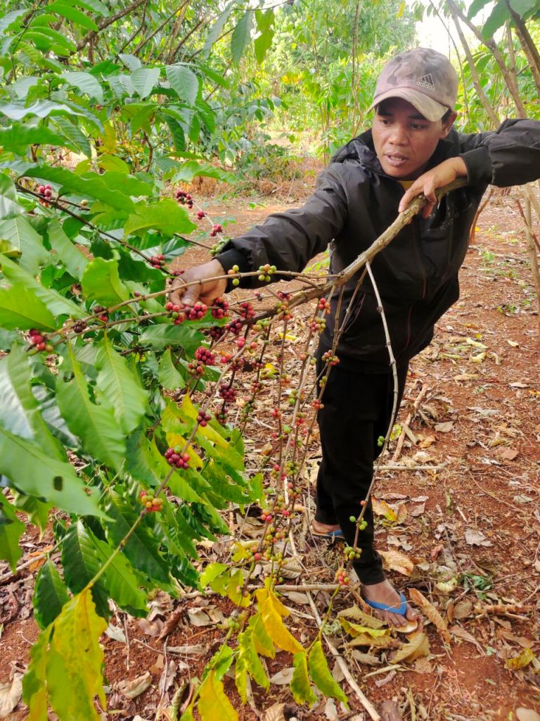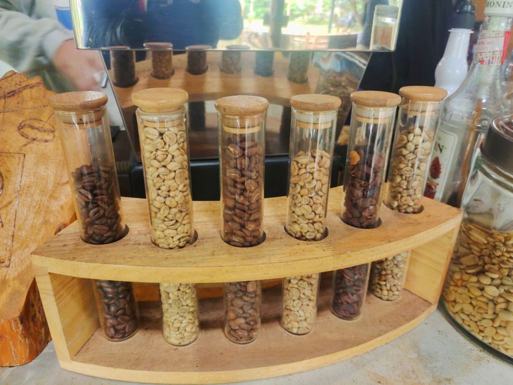 Die Gegend um Pakse ist bekannt für Wasserfälle und Kaffeeanbau. Und so lernten wir einiges über Kaffeebohnen und den Röstvorgang. Für Anke wurde zum Glück auch ein bisschen Tee angebaut.