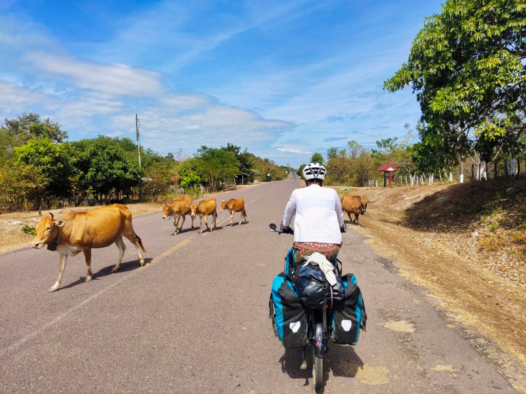 Kambodscha dagegen hat sich für uns im Nachhinein als eher anstrengendes Rad-Reiseland herausgestellt. Die Straßen waren sehr oft wirklich schlecht, staubig und die Landschaft wenig reizvoll. Das Essen fiehl uns häufig schwer und viele Male aßen wir eher etwas widerwillig undefinierbare, zerhackte Tierteile. Aber hey, wir hatten Hunger. Herausgestochen ist dafür unser Besuch in Angkor Wat! Den wollen wir wirklich nicht missen.
