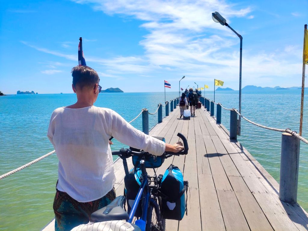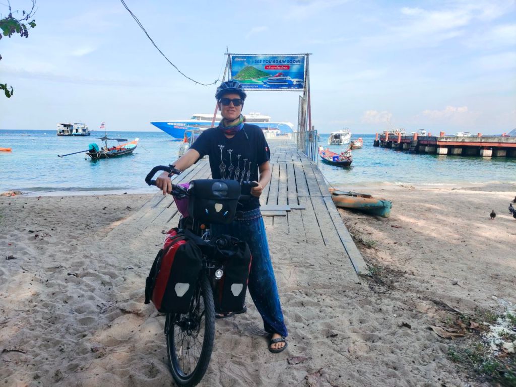 Wer kennt sie nicht, die Bilder aus Thailand? Traumstrände, wiegende Palmen, blaues Wasser und idyllische Küstenformationen… Auja, das wollten wir auch. Beschwingt radelten wir von Chumphon zum Lomprayah Pier und trafen auf dem Weg zur Fähre ein anderes Fahrradpärchen aus Frankreich. Eine nette Ablenkung, mit ihnen zusammen quatschend die letzten Meter hinzulegen. Doch der exorbitante Fährpreis hätte uns schon stutzig machen sollen. Die Räder kosteten genausoviel wie wir und so blechten wir für 2 Stunden Speedboot 70 €. Woher kamen plötzlich all die vielen anderen Touris. Bisher waren wir doch fast immer alleine?