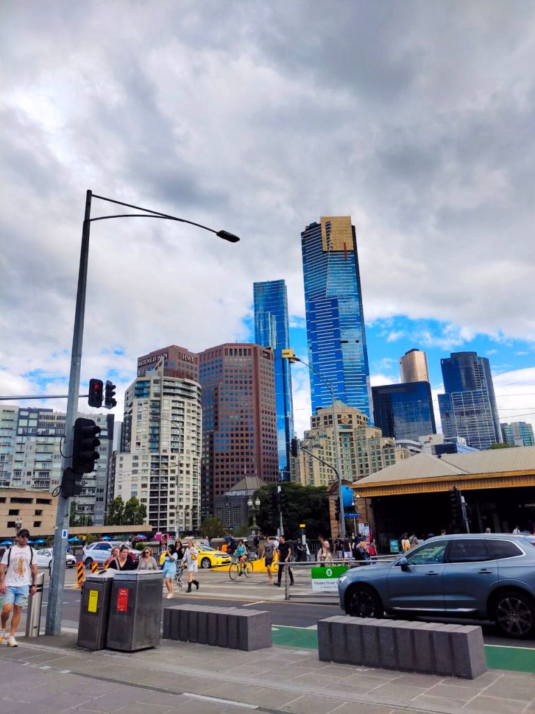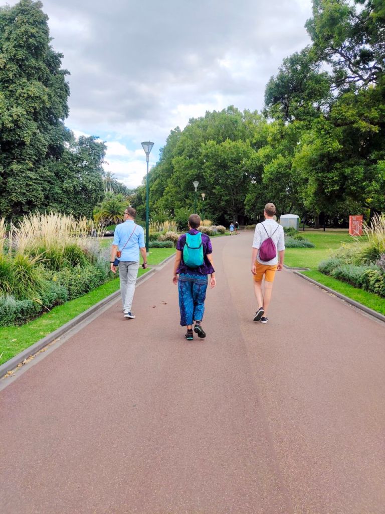 Wir schlenderten gemeinsam mit den beiden Weltenbummlern Arne und Soehnke durch Melbourne und lernten dabei, dass die knapp 5 Mio. Metropole dafür bekannt ist, dass man an einem Tag 4 Jahreszeiten erleben kann. „Es ist unmöglich, sich passend anzuziehen. Du musst dich jeden Tag aufs Neue entscheiden, an welchem Teil des Tages du dich unwohl fühlen willst. Frieren oder schwitzen?“, erklärte uns ein Melbourner … Und in der Tat, das Wetter war recht unstetig. Aber Winter? Das ist dann doch etwas übertrieben.