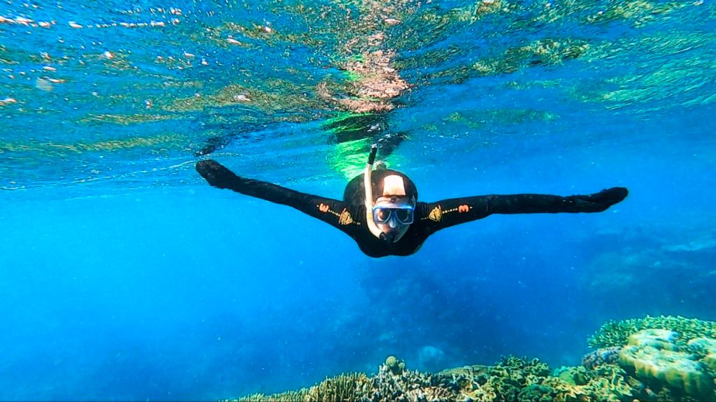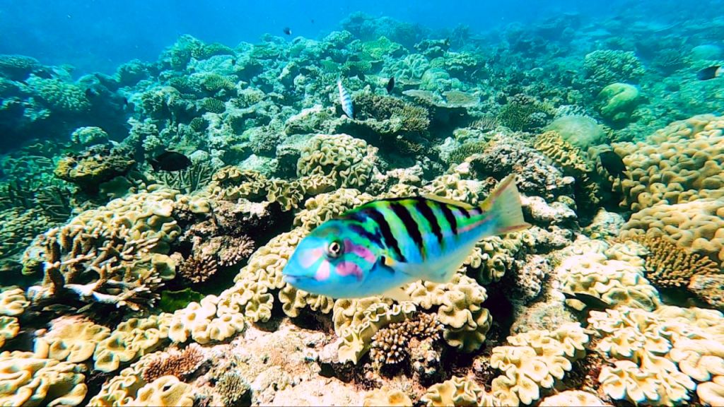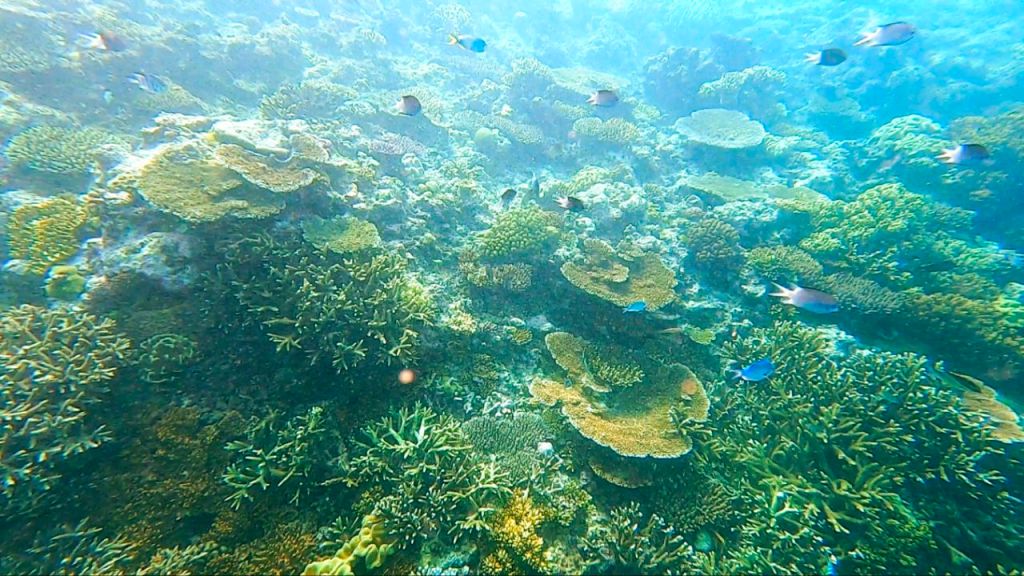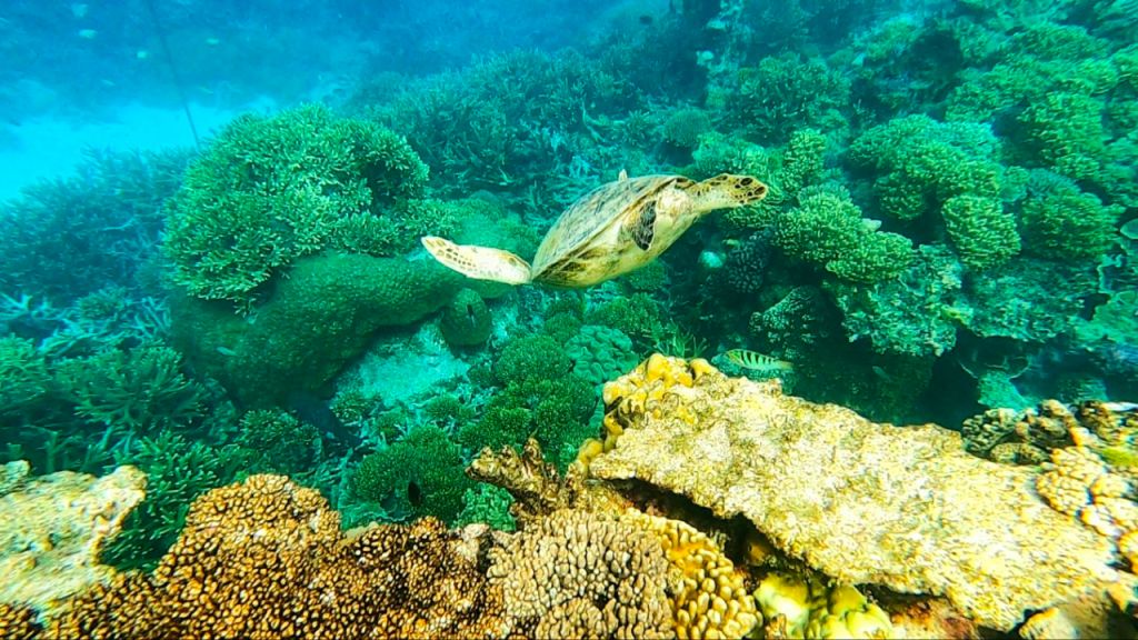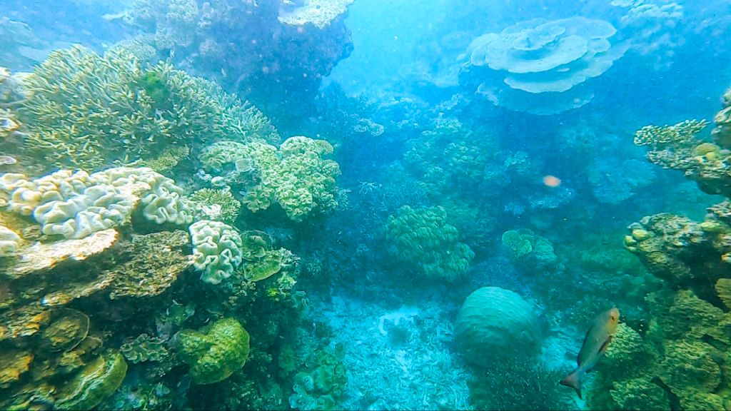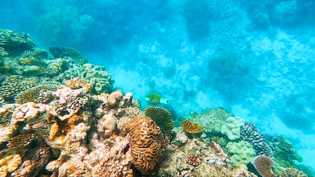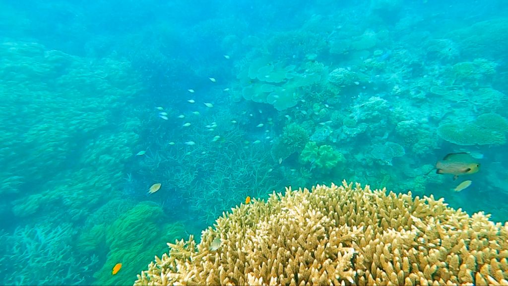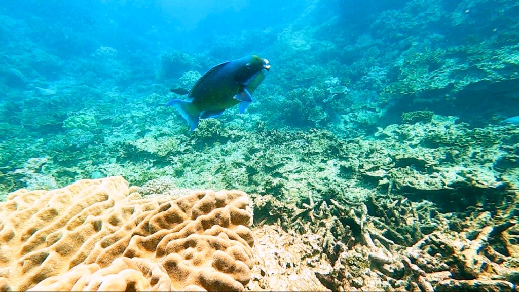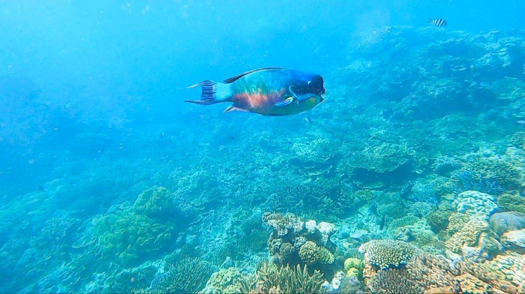 Aus der Nähe betrachtet, erschloss sich uns eine fantastische Welt. Recht große Napoleon-Lippfische (auch Maori Wrasse), bunt glitzernde Papageifische, gestreifte Doktorfische und Anke entdeckte sogar eine Meeresschildkröte. Klar wussten wir im Vorfeld, dass hier eines der Weltwunder der Natur auf uns wartet. Aber am Ende unserer Fahrradweltreise ins warme Wasser zu springen und diese Artenvielfalt hautnah zu erleben, hat uns einfach überwältigt. Was für ein krönender Abschluss nach über 15 Monaten reisen.