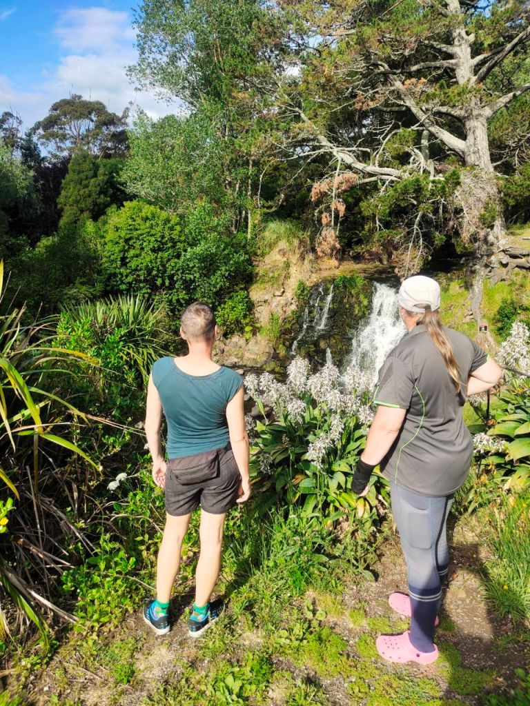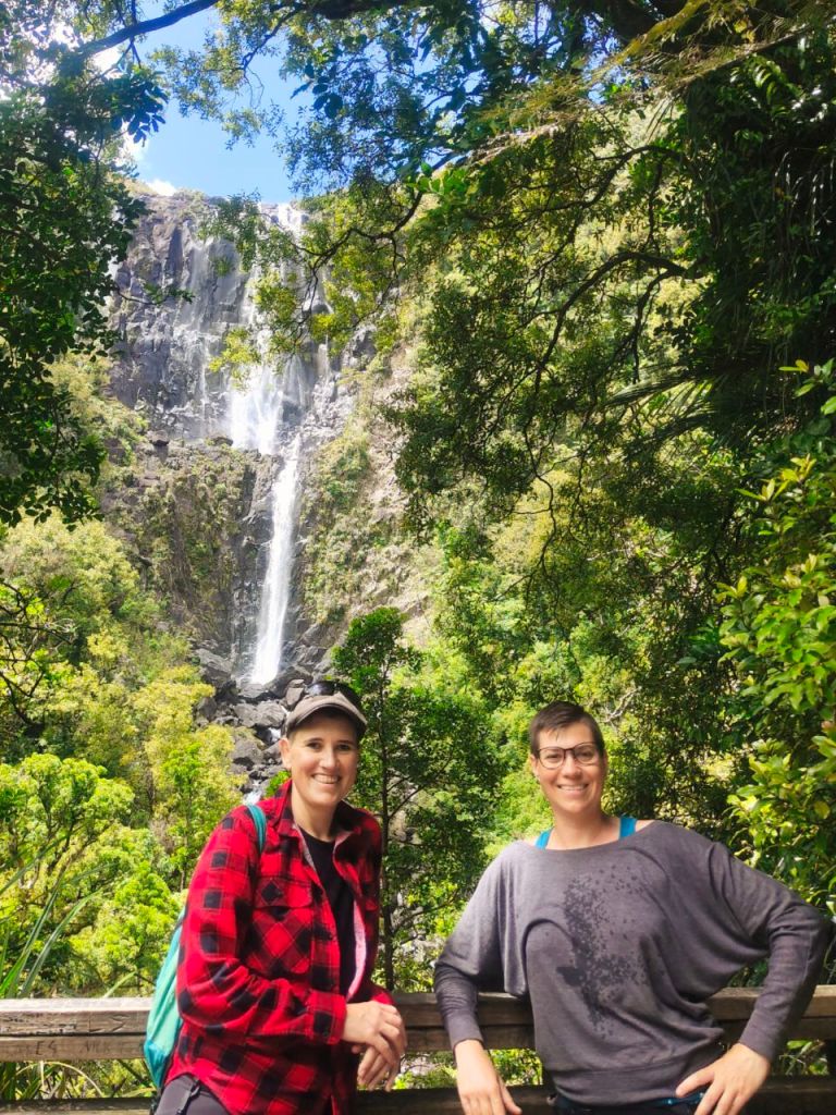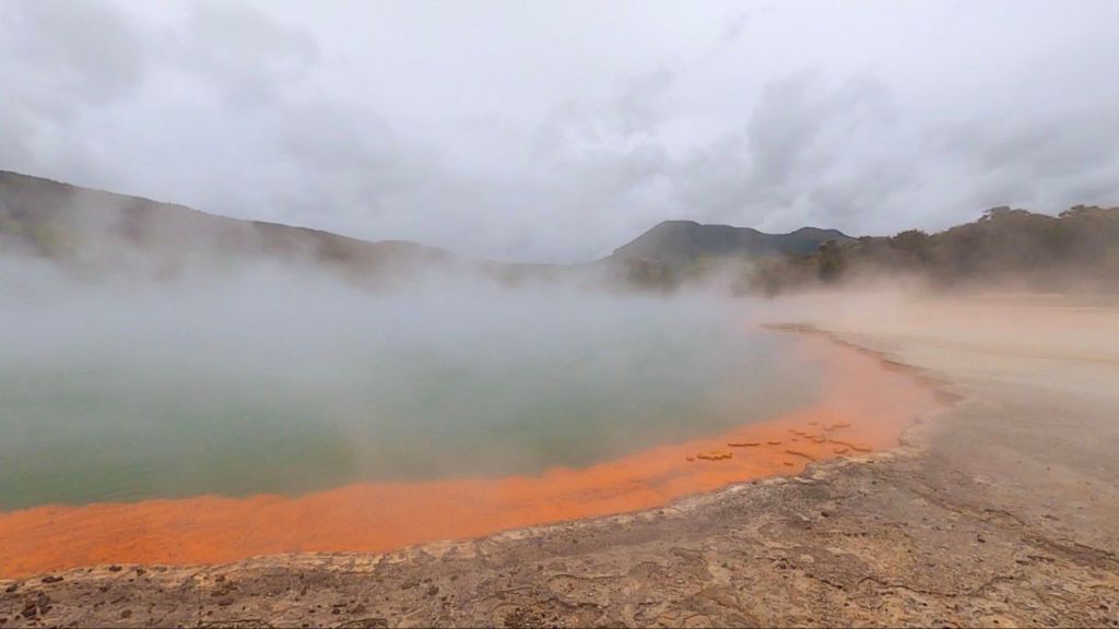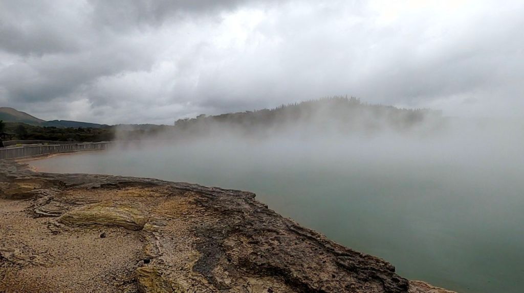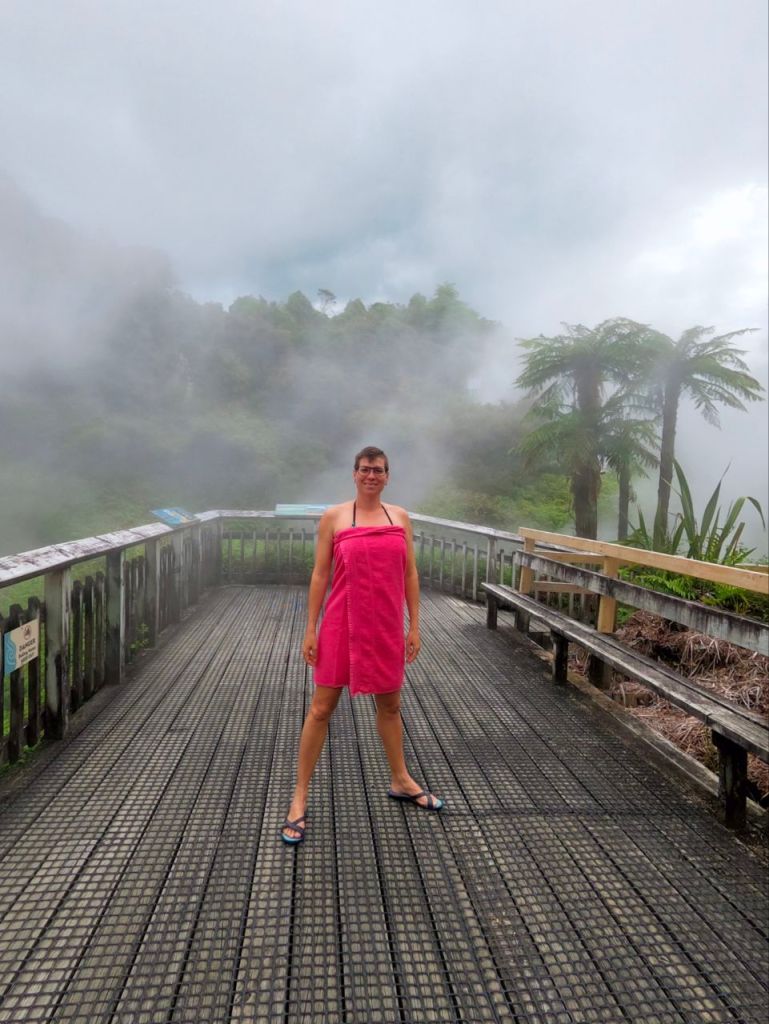 Am nächsten Wochenende ging es dann nach Rotorua, bekannt für die geothermalen Aktivitäten – sprich jede Menge Hotpools, brodelnde Schlammlöcher, heiße Quellen und schwefelige Ablagerungen. Wir tauchten buchstäblich in eine andere Welt ab und badeten sogar in einem heißen Fluss mitten im Wald. Was für eine abgefahrene Erfahrung, unter einem warmen Wasserfall zu sitzen und in den Wald zu schauen. Auch unser Campingplatz lag direkt an einer heißen Quelle und so dümpelten wir glücklich in diversen Pools herum.