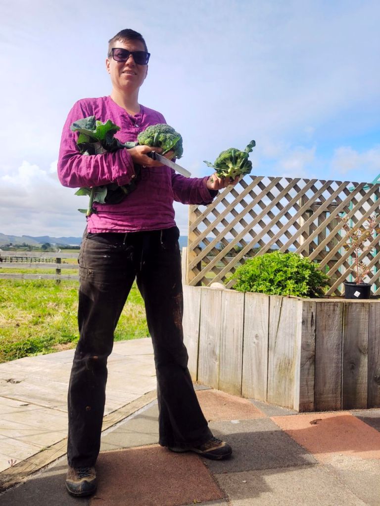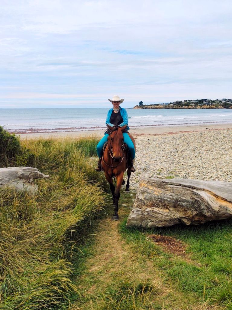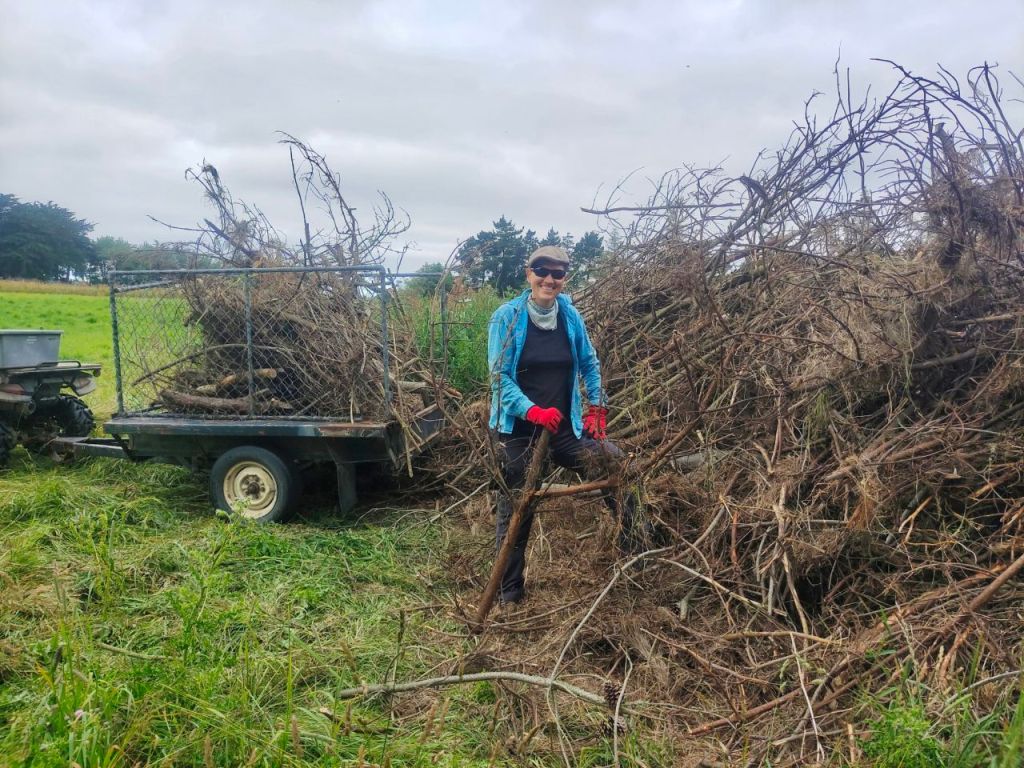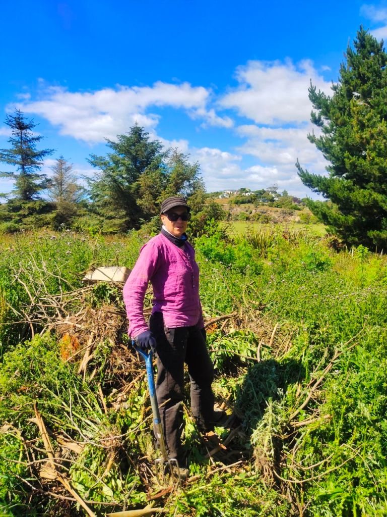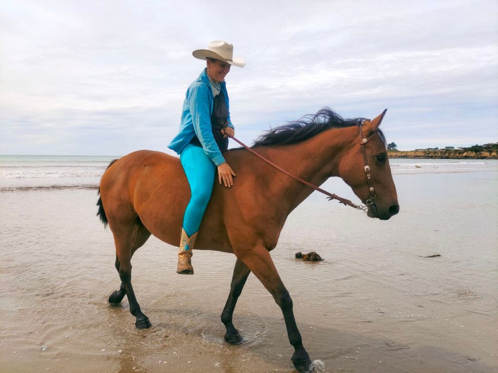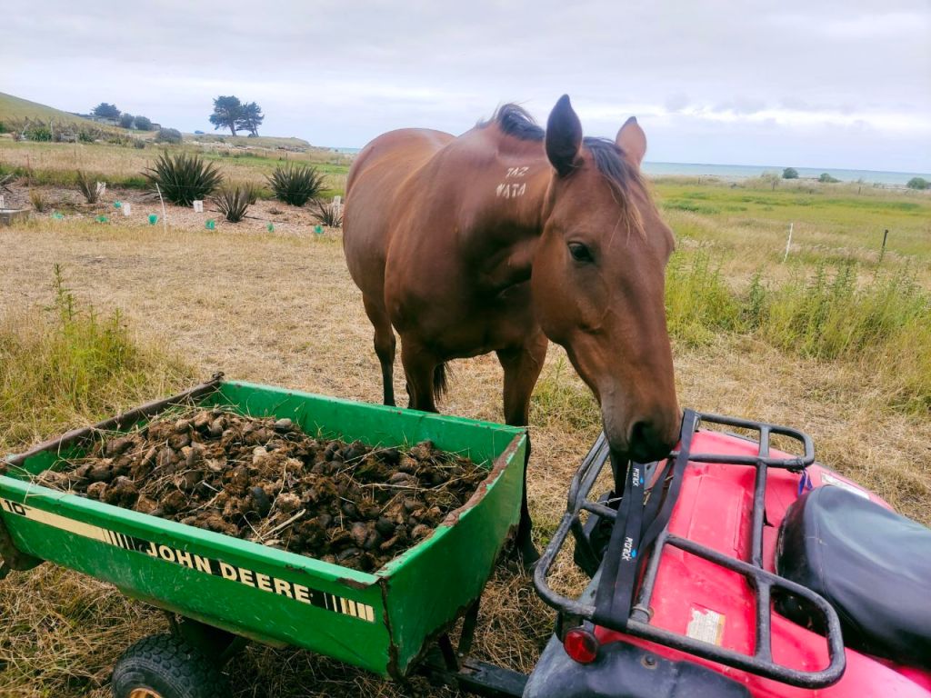 Doch dann ging es auf zu Luce, James und ihren 2 Kids. Auf einer neuen Farm anzukommen, ist immer aufregend. Trotz ausgefeilter Profile und viel hin und her Geschreibe, weiß man nie so ganz genau, was einen erwartet. In diesem Fall ein wunderschönes Meeresgrundstück mit direktem Zugang zum ausgedehnten Strand. Neben drei Pferden für Dana, gab es auch einen Permakulturgarten für Anke. Die Arbeit war abwechslungsreich und nicht allzu anstrengend. Jede Menge Holzschnipsel mussten als Mulch verteilt werden, neue Pflanzen – meist Flachs – angepflanzt werden, das obligatorische Unkraut gejätet werden und die Pferdeliebhaber:innen unter euch wissen: ein Pferd äppelt gerne bis zu 12x am Tag und so kommt man mit Pferdeäpfeln einsammeln eigentlich nie hinterher.