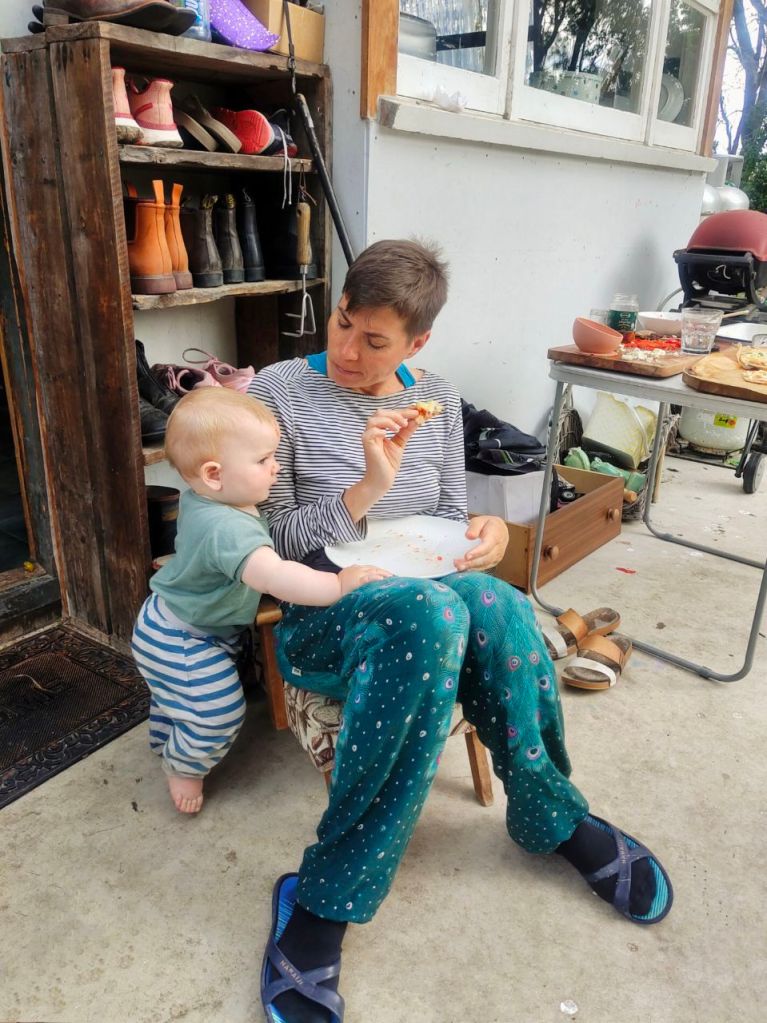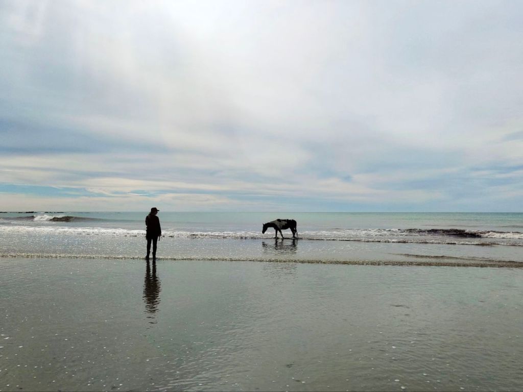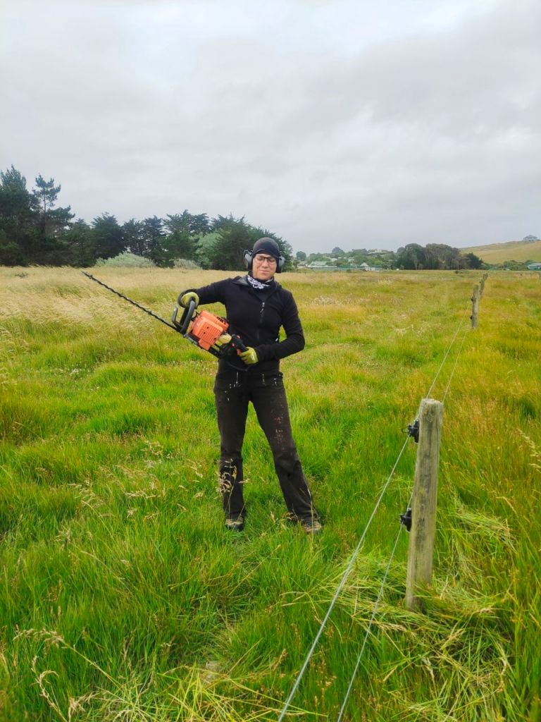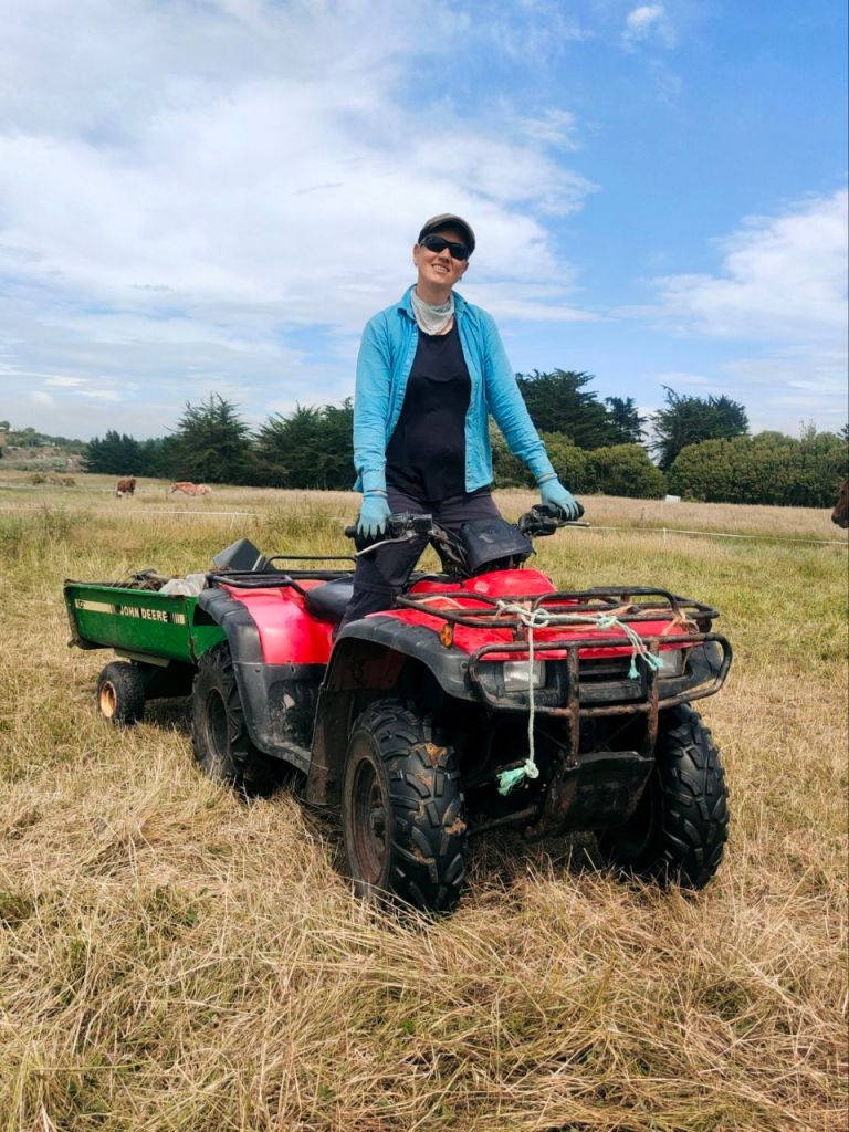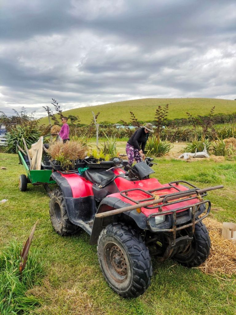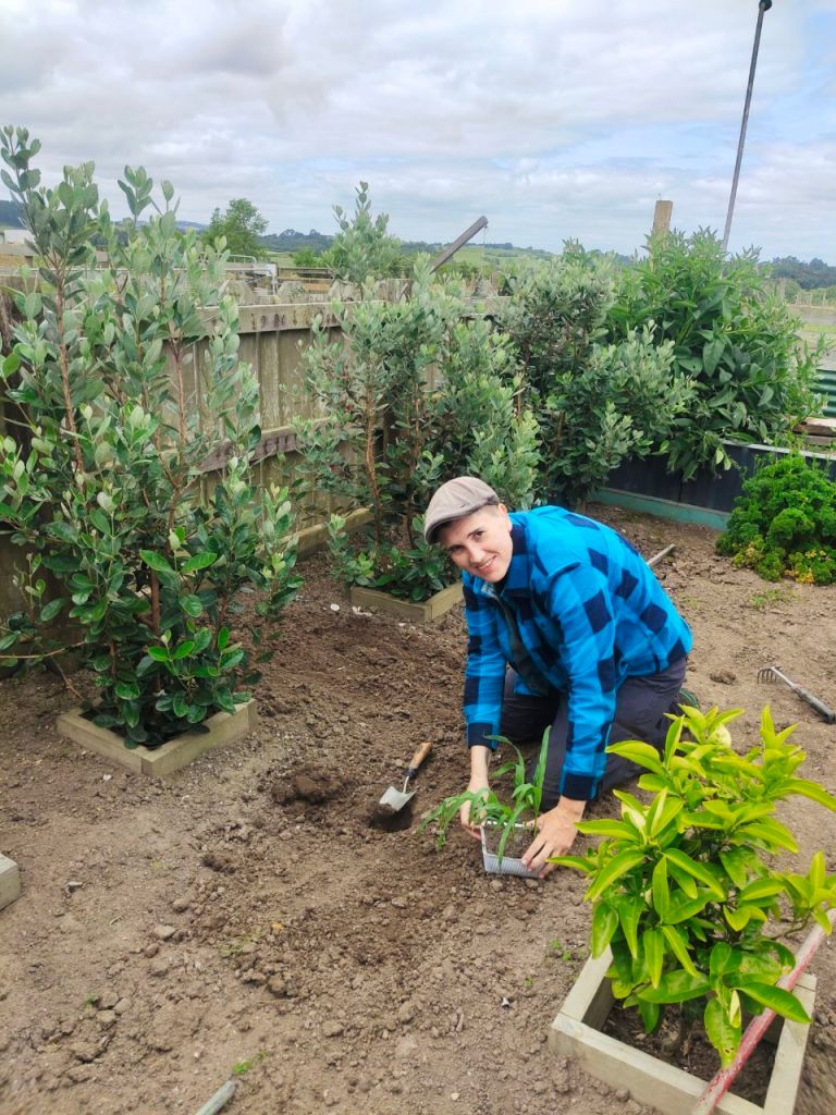 Doch dann ging es auf zu Luce, James und ihren 2 Kids. Auf einer neuen Farm anzukommen, ist immer aufregend. Trotz ausgefeilter Profile und viel hin und her Geschreibe, weiß man nie so ganz genau, was einen erwartet. In diesem Fall ein wunderschönes Meeresgrundstück mit direktem Zugang zum ausgedehnten Strand. Neben drei Pferden für Dana, gab es auch einen Permakulturgarten für Anke. Die Arbeit war abwechslungsreich und nicht allzu anstrengend. Jede Menge Holzschnipsel mussten als Mulch verteilt werden, neue Pflanzen – meist Flachs – angepflanzt werden, das obligatorische Unkraut gejätet werden und die Pferdeliebhaber:innen unter euch wissen: ein Pferd äppelt gerne bis zu 12x am Tag und so kommt man mit Pferdeäpfeln einsammeln eigentlich nie hinterher.
