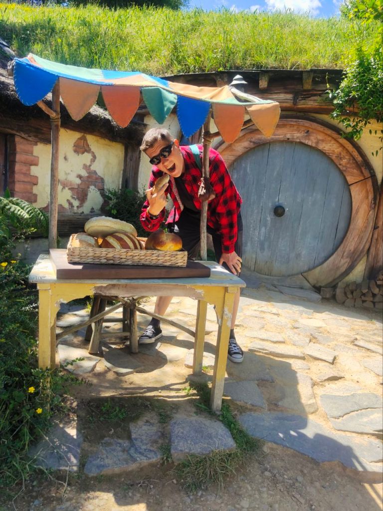 Apropos Urlaub. Für die Wochenenden bekamen wir das große Familienauto und konnten so in aller Ruhe die Nordinsel Neuseelands erkunden. Unser erster Ausflug ging nach Hobbiton – dem Filmset an dem die Szenen im Shire gedreht wurden, also der Heimat der Hobbits. Mit frischen Filminhalt im Kopf erkundeten wir die pittoreske Gegend. Ein bisschen mehr Nerdwissen hätten wir uns an einigen Stellen von der Führung schon gewünscht.