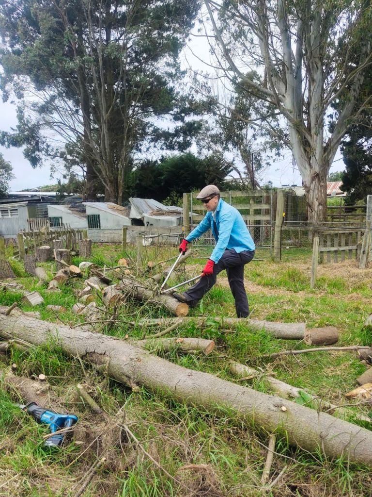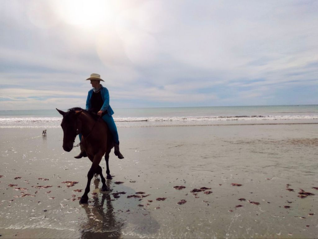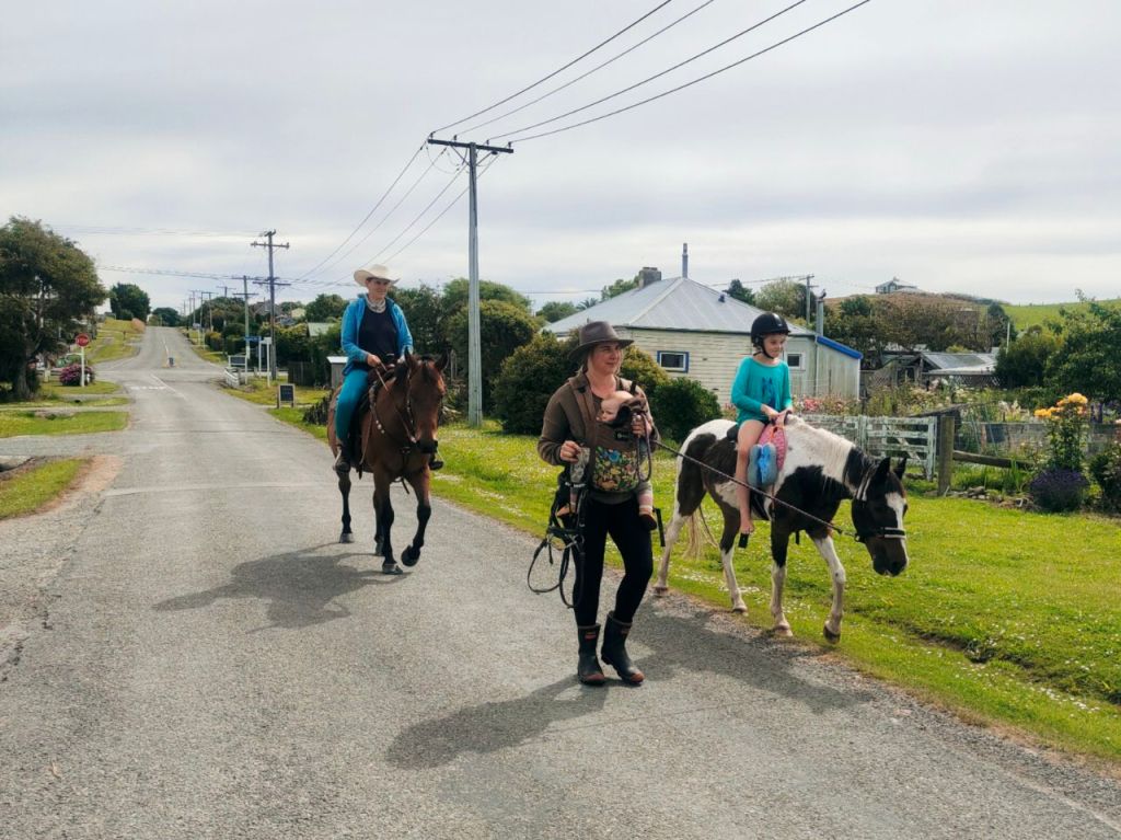 Mit der Zeit lernten wir mehr und mehr Familienmitglieder von James kennen und so siedelten wir nach 2 Wochen einfach zu seiner Schwester weiter, die Hilfe mit jeder Menge gefällter Bäume brauchte. Und super, dass sie auch noch Pferde zum Reiten hatte. Dana war im Himmel als sie mit Hank am Strand langtrabbte, während das alte Pony Winny sich genüsslich in den Wellen wälzte. Und zwischendurch erfreuten uns ihre Kids mit kreativen Spielen.