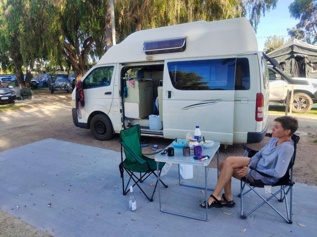 Was für eine angenehme Art zu reisen. Nach 16 Monaten Zelt ⛺ und Rad 🚴‍♂️ ist so ein Camper erstaunlich easy für uns. Abends einfach parken, Gaskocher an und frisches Essen aus dem kleinen Kühlschrank geholt… und das Bett ist auch schon fertig. Was für ein Luxus!🤩
