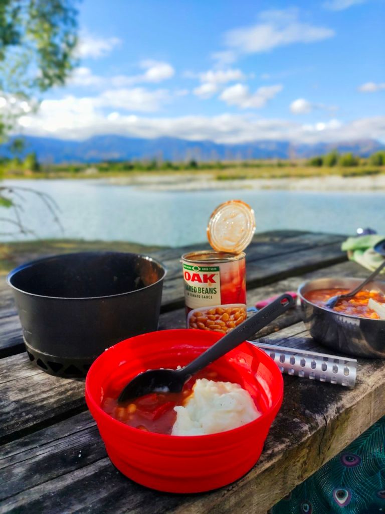 Bis auf die anfänglich etwas intensivere Putzaktion, um den geliehenen Wagen in einen angenehmeren Zustand zu bringen, war unser rollendes Zuhause soweit ok. Wir hatten eine Liegefläche, einen Gasherd mit zwei Platten sowie ein kleines Waschbecken und einen Kühlschrank.