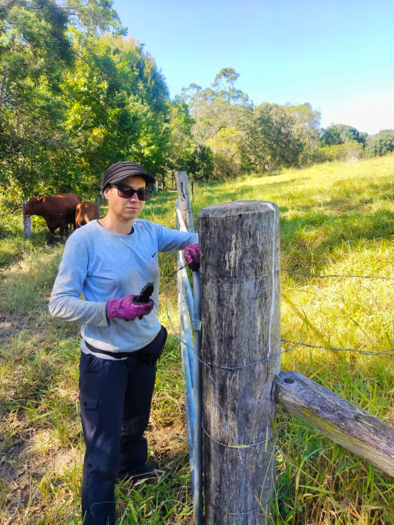 Dana hat mal wieder die Kettensäge geschwungen, während Ankes Armmuskeln beim Beschneiden des Regenwaldes gefragt waren. Außerdem haben wir schon den Koppelzaun für die Kühe repariert, die Einfahrt für die Autos aufgefrischt und Feuerholz gemacht… puh ganz schön viel Arbeit auf so einer „kleinen“ australischen Farm (14 Hektar 🤠). Zum Glück sind auch gerade Helena und Julian (aus Deutschland) zum Wwoofen bei Brian und Christine.