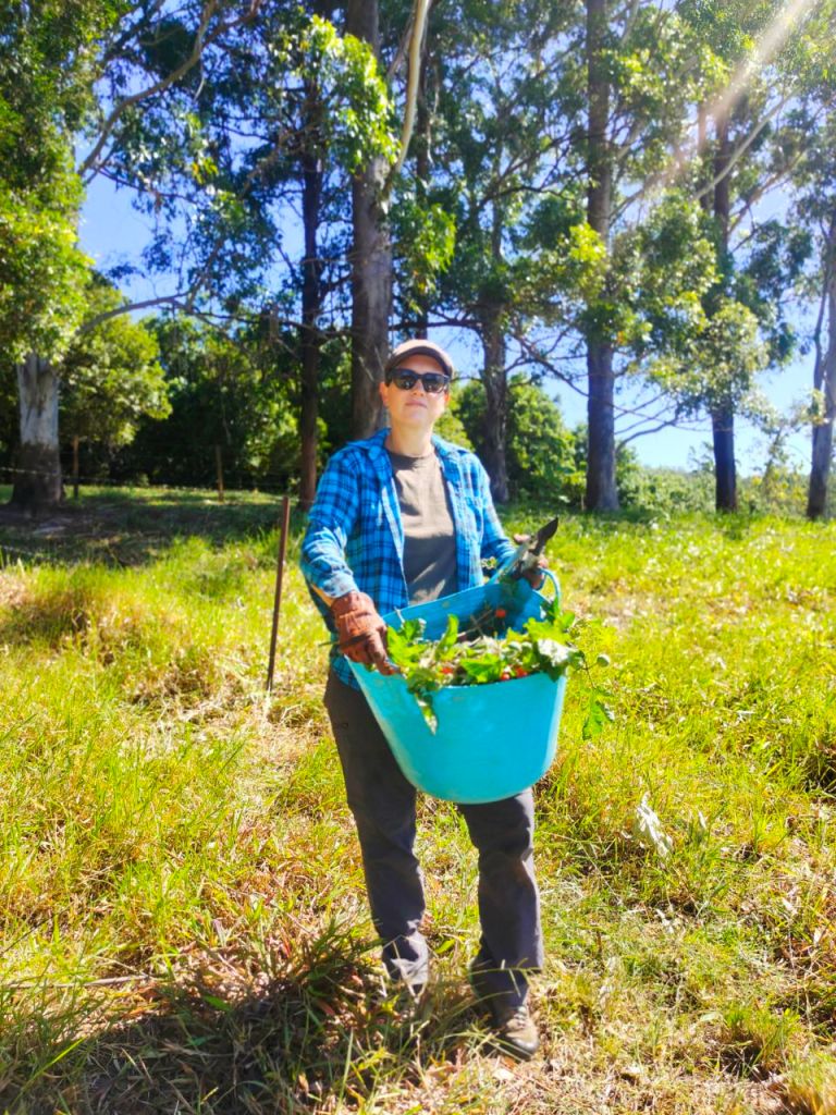 Wunderbares Farmerinnen-Leben.🧑🌾 Während Dana von einem Leben als Jillaroo (die australische Variante eines Cowgirls🤠🐎) träumt, genießt Anke die abwechslungsreiche Arbeit auf dem Hof. Mal muss Bambus gefällt werden, mal der Regenwald etwas gestutzt. Und der Koppelzaun für die Kühe hält uns weiter auf Trab, aber auch der Gemüsegarten braucht Pflege.