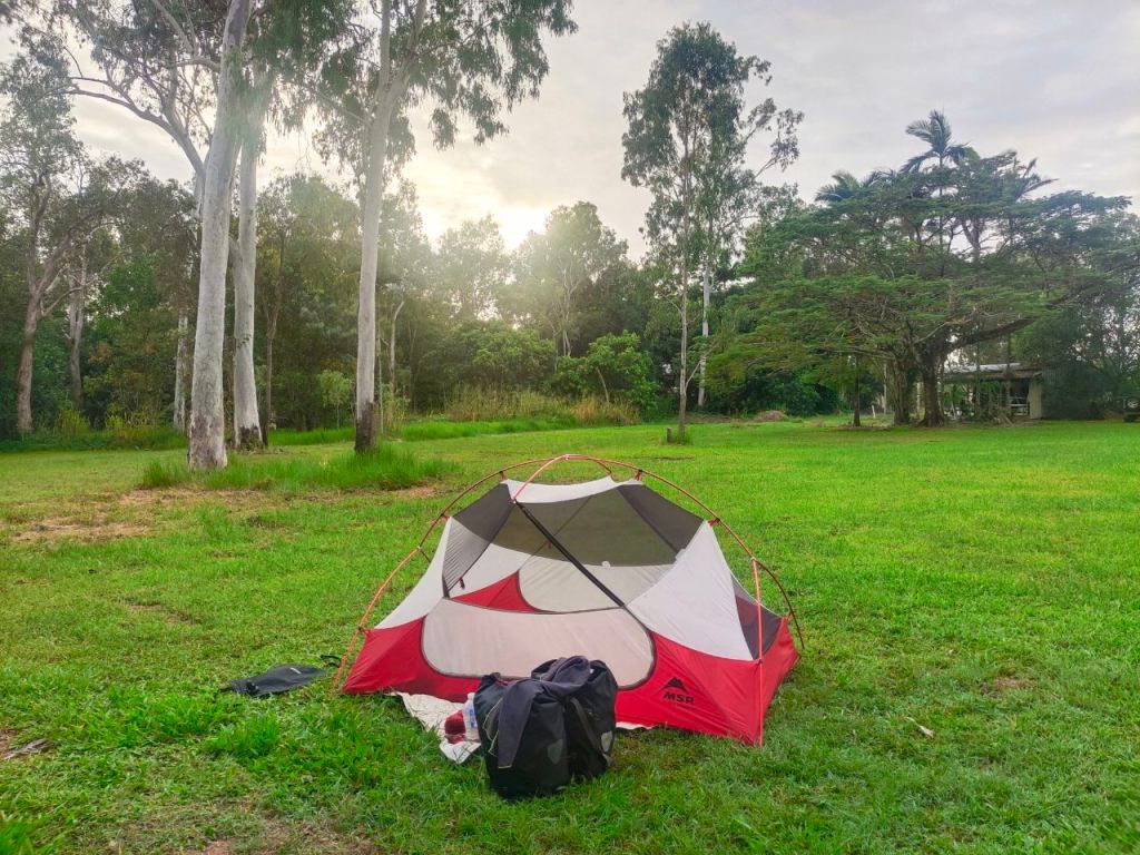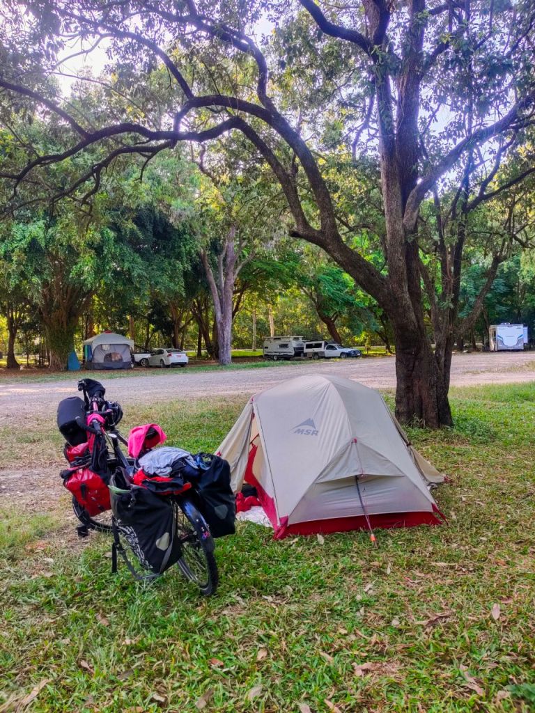 Wir sind endlich wieder auf dem Fahrrad. 🚴🚴♂️ Ganze zwei Monate haben wir uns in Australien ausgeruht und fahren nun bis Cairns. 🚵♂️💪 Das heißt, endlich wieder unser alter Radreise-Rhythmus: Radeln, Zelt aufbauen, Kocher anwerfen… Hier in Australien werden sogar ganz offizielle „Free Camping Areas “ mit Dusche und WC geboten. 🏕️🚿🚻