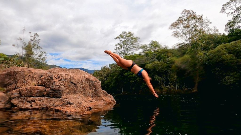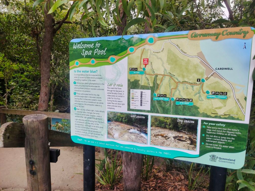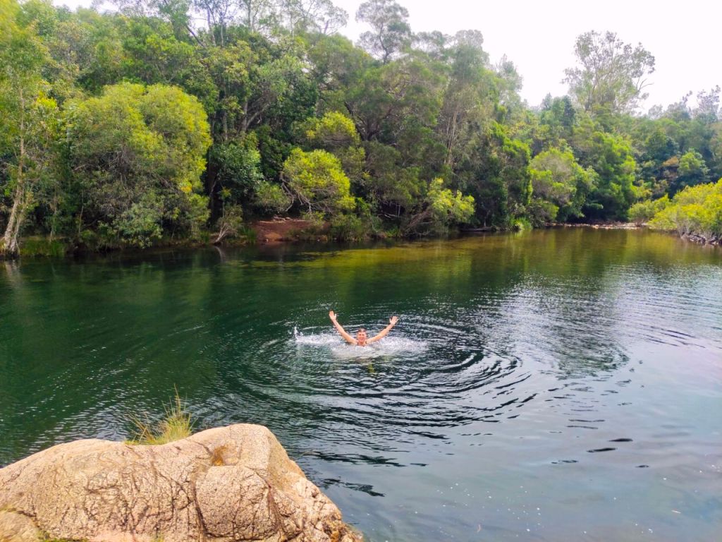 Ansonsten sind wir ganz begeistert vom australischen Camping-Spirit. An der Küste warten überall luxuriöse Campingplätze mit Küche, Pool und sehr sauberen Duschen auf uns. Zudem gibt es free Rest-Areas (Bild 7) inkl. BBQ, Toiletten und Sitzgelegenheiten, an denen Zelten bis zu 2 Nächte erlaubt ist. Aber am schönsten sind die Stellplätze in den Nationalparks, die für kleines Geld gebucht werden können. Da gibt es dann sogar wunderbare (krokodilfreie) Badestellen in klaren Flüssen.