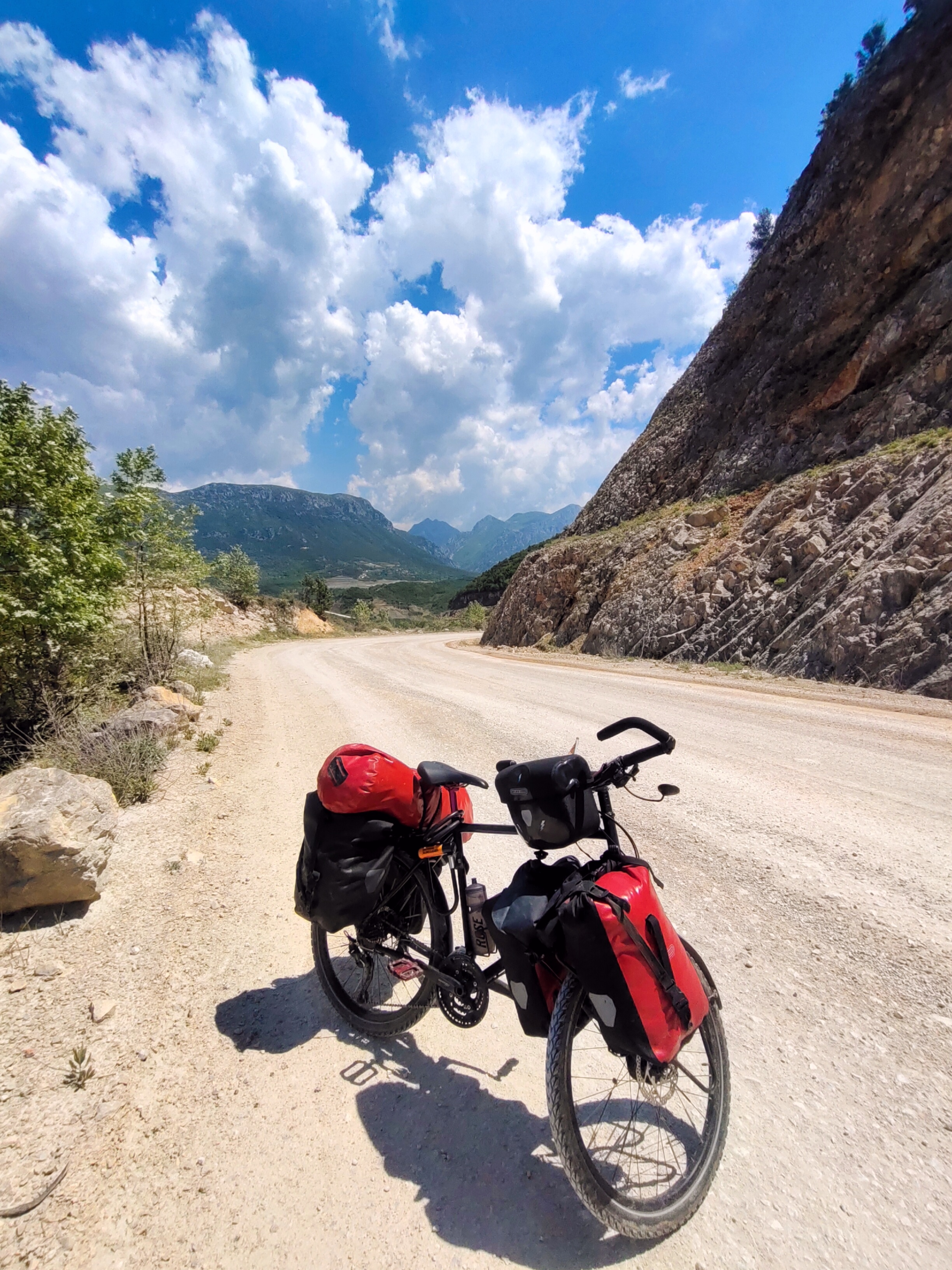 Am nächsten Tag machte Dana dann eine Unterkunft klar. Wir fanden nicht wirklich einen Camping-Spot und so fragte sie mutig mehrere Männer, die vor einer Bar saßen, ob einer von ihnen etwas wüsste. Campingplatz? Pension? Fehlanzeige. Doch ein etwas schüchterner Mann meinte: „Kein Problem ich habe ein Haus.“ Auch die anderen Kerle bestätigen, ja wirklich, das sei kein Problem, er hat Frau und Kinder. Mh…nagut. Wir wagten es, schließlich sei es ja auch ganz in der Nähe. Naja, wie das mit Autofahrenden halt so ist, radelten wir ihm dann hechelnd nochmal 7 km hinterher. Aber es hat sich wahrlich gelohnt. Die Gastfreundschaft war überwältigend: Es gab Baklava mit Tee, wir konnten duschen und spätestens als unsere Wäsche liebevoll mit viel duftendem Weichspüler gewaschen wurde, haben wir uns sehr, sehr glücklich geschätzt. Die Kommunikation mit Google Translator war nicht immer einfach, dennoch verstanden wir uns alle gut. Hashids Frau kochte, zeigte uns Familienfotos und zur Not wurde einfach immer die Tochter in Kanada zum Übersetzen angerufen (wie spät es wohl bei ihr so war?). Sehr satt und sehr glücklich schliefen wir auf dem Familienschlafsofa ein. Und am nächsten Morgen durften wir erst losradeln als Hashid extra bei der Bäckerei war, sie zur Hälfte leer gekauft hatte und mit vielen Energy Drinks, süßen Croissants und belegten Brötchen zurückkamen.