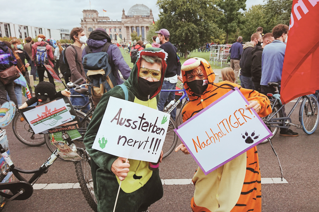 Wir sind Anke und Dana. Wenn wir nicht gerade in bunten Kostümen über Demos, wie „Wir haben es satt“, den Dyke* March Berlin oder Unteilbar hüpfen, sitzen wir auf unseren Fahrrädern. Dana radelt auch gerne mal alleine in den Urlaub und ist schon durch Frankreich, Spanien, Portugal, Ungarn und Bulgarien gestrampelt, während es Anke noch weiter abseits zieht. Sie verbringt ihre arbeitsfreie Zeit gerne mit Freund:innen beim Wandern in höheren Gefilden, wie den Alpen.